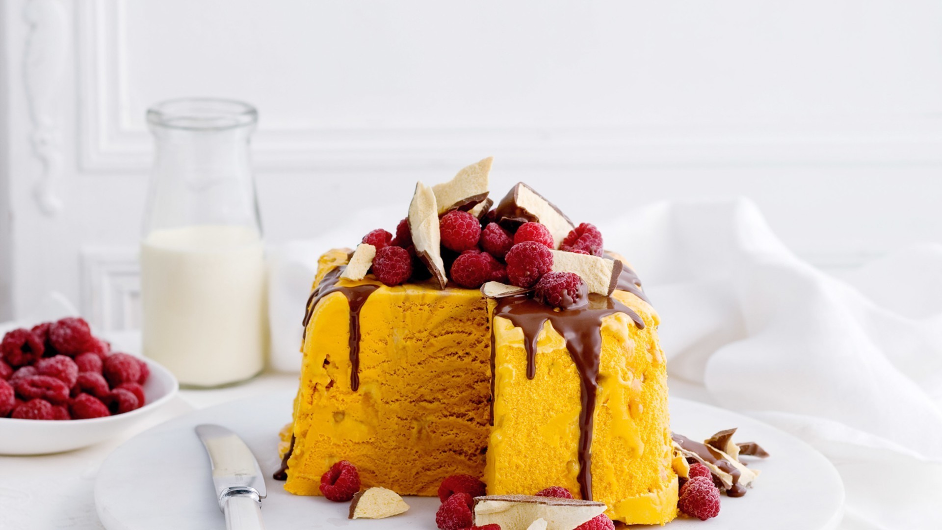 Deser truskawkowy na białym stole