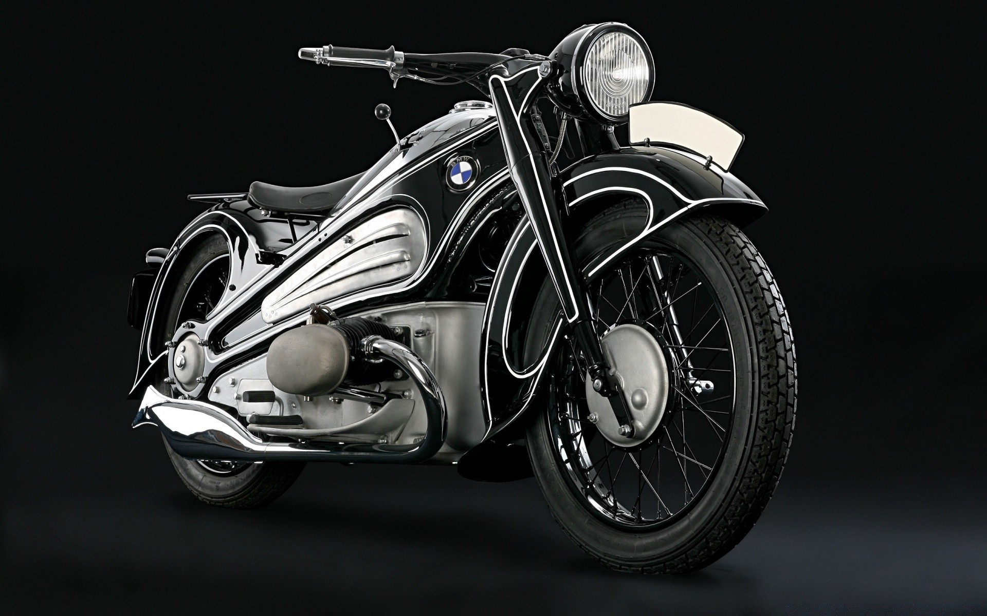 Motocykl w kolorze srebrnym na czarnym tle