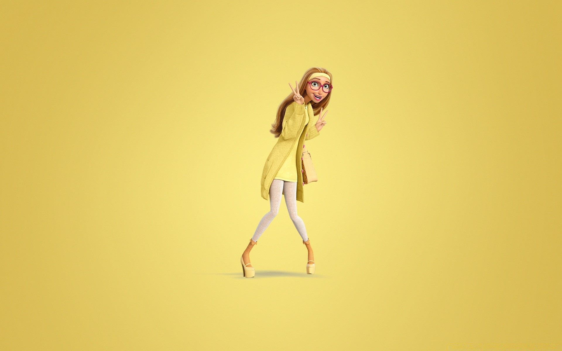 Kreskówka dziewczyna w okularach na żółtym tle