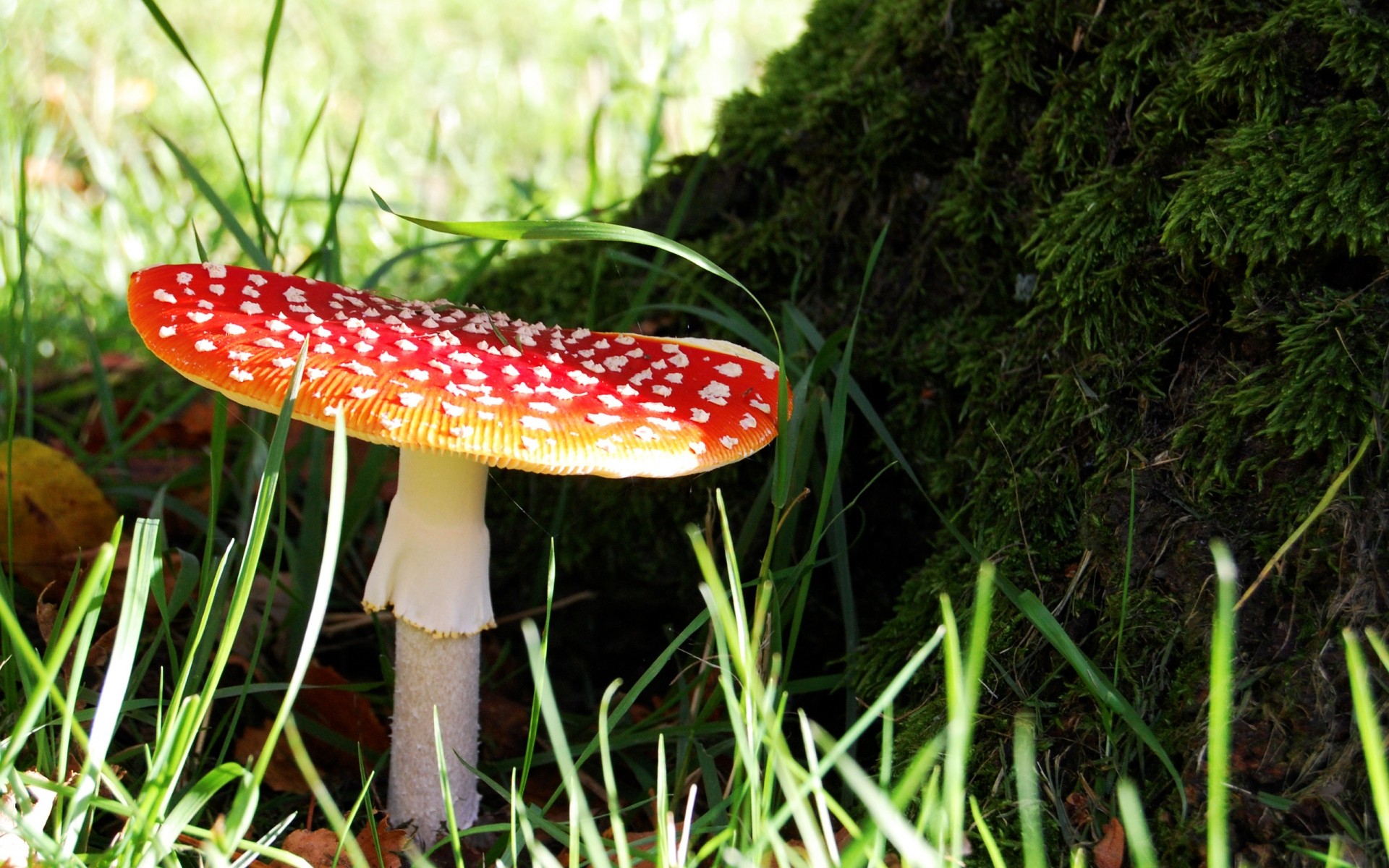 Złotowłosa w szarej koszulce spaceruje w zieleni lasuZłotowłosa w szarej koszulce spaceruje w zieleni lasu