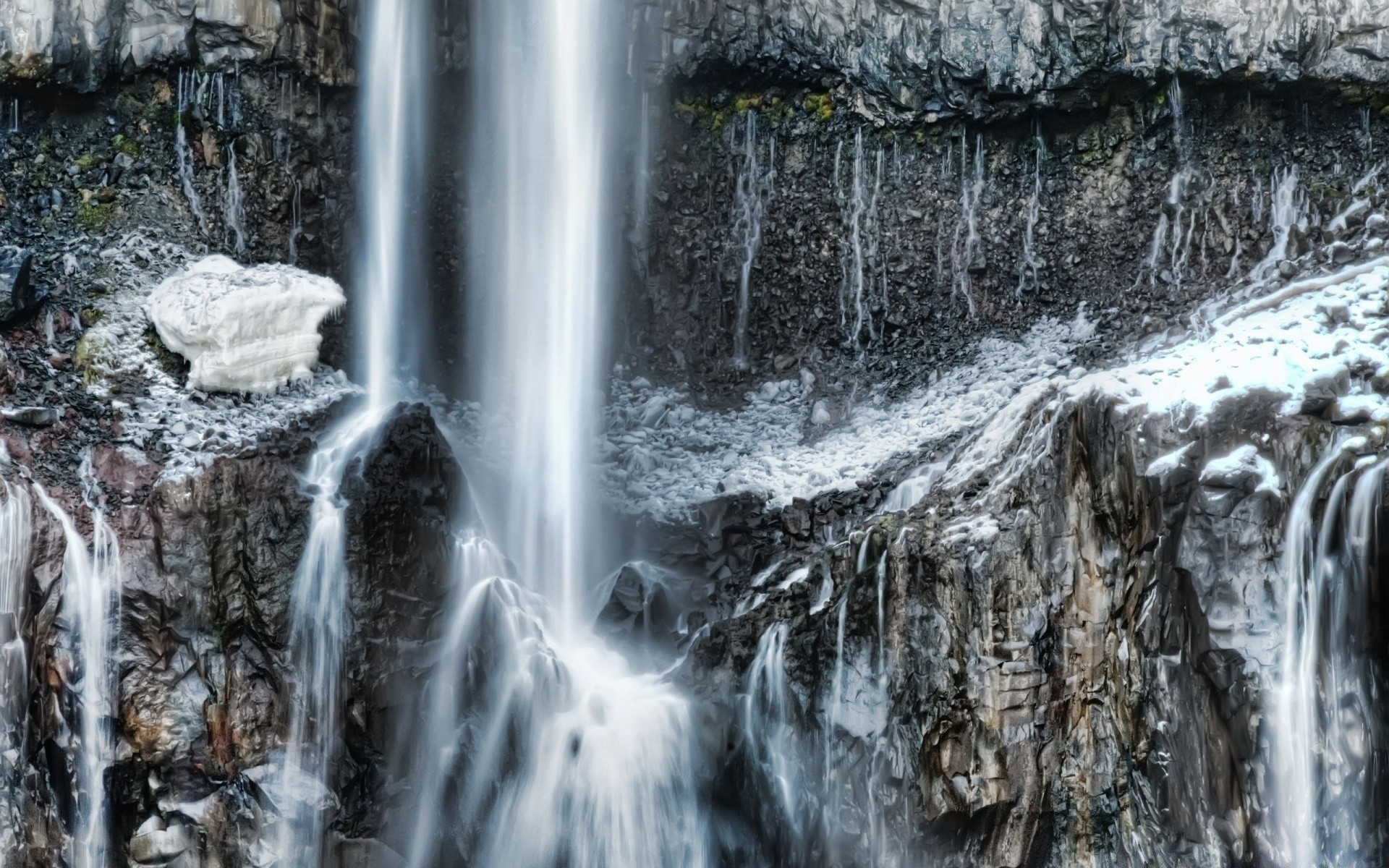 Wodospad w zimnych górach skalistych