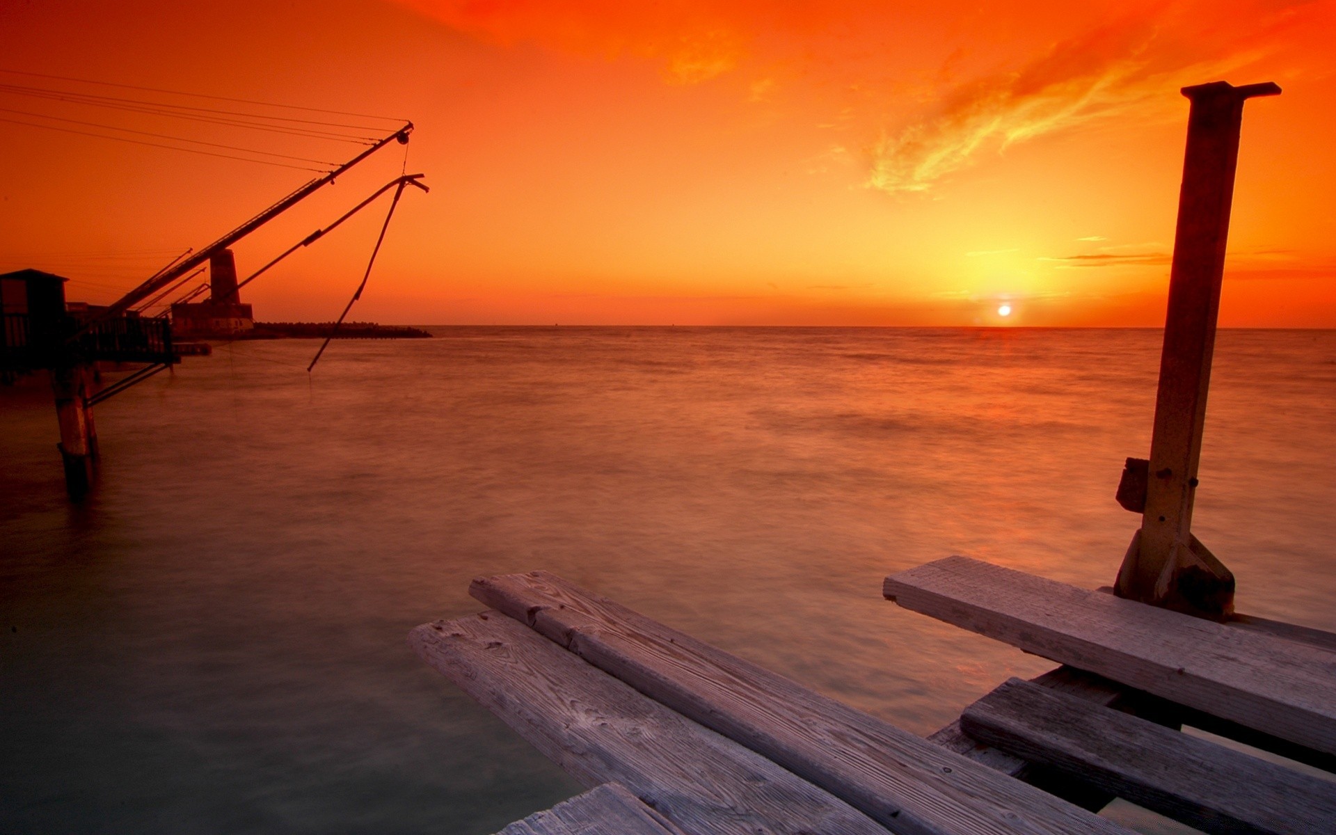Rzeka. Zabudowa miejska. Dźwigi morskie