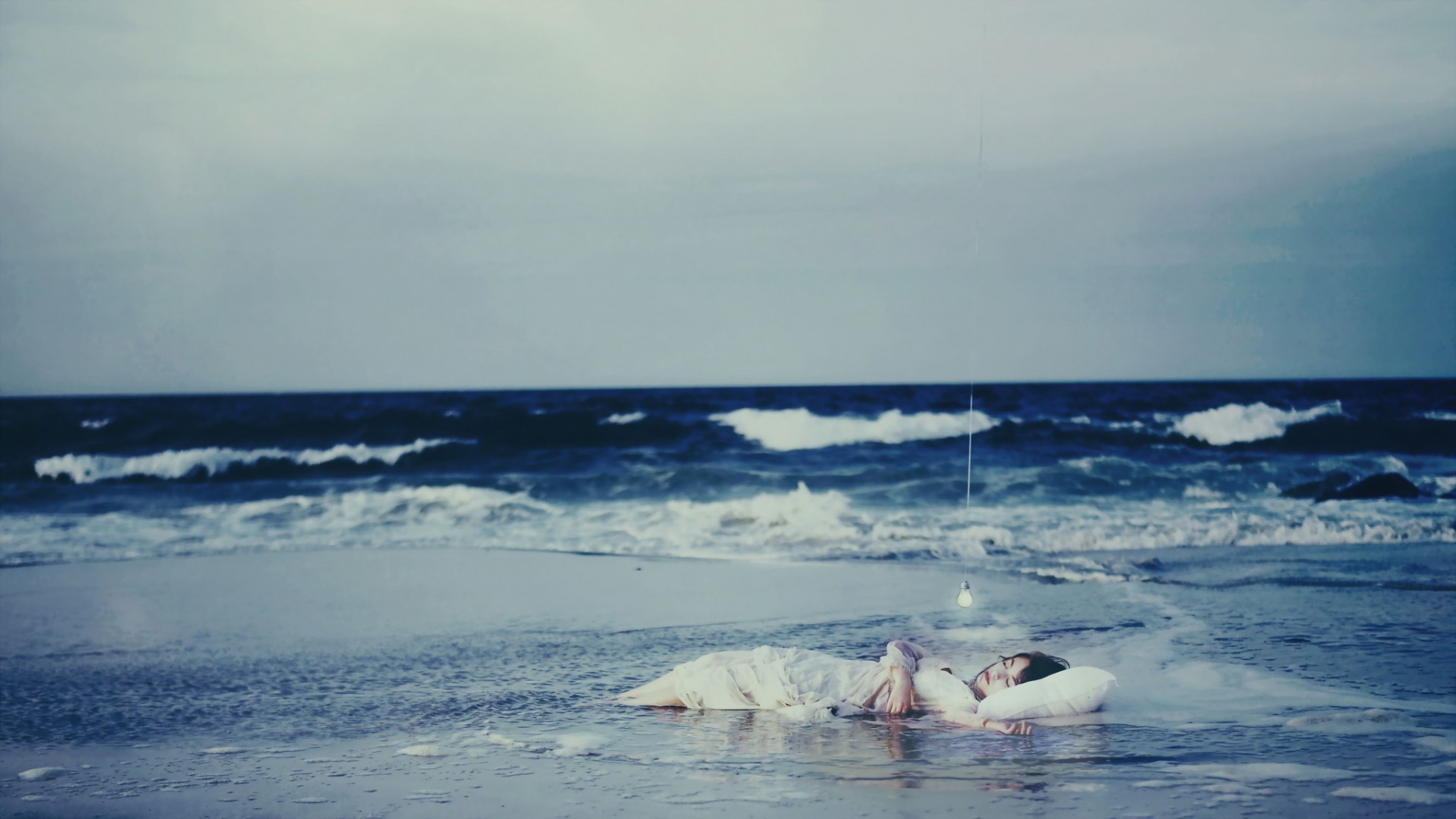 Dziewczyna śpi nad morzem