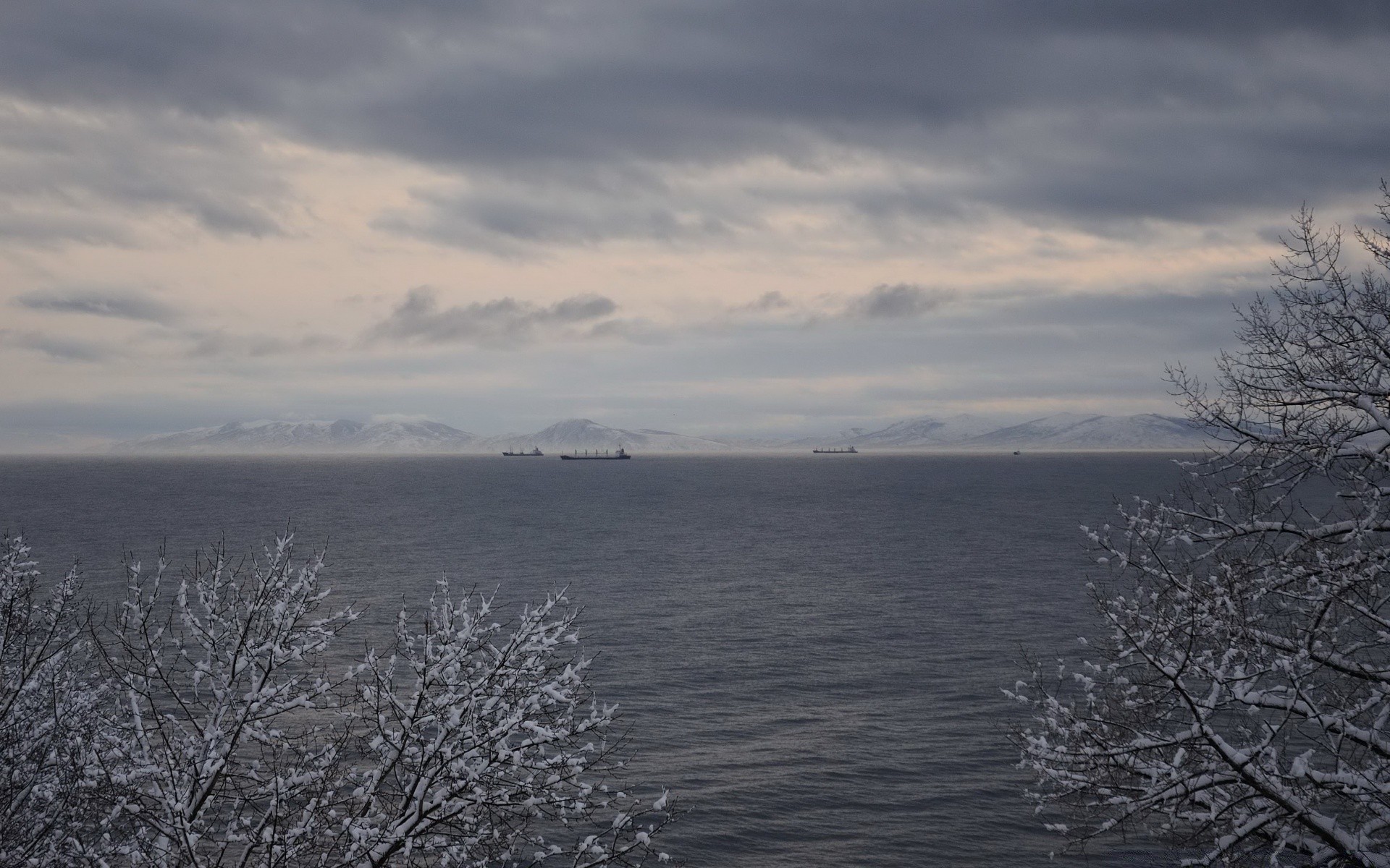 Szare niebo i zimowe morze