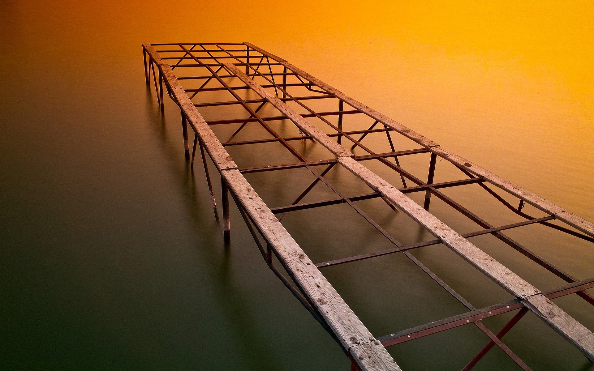 Most na rzece na tle zachodzącego nieba