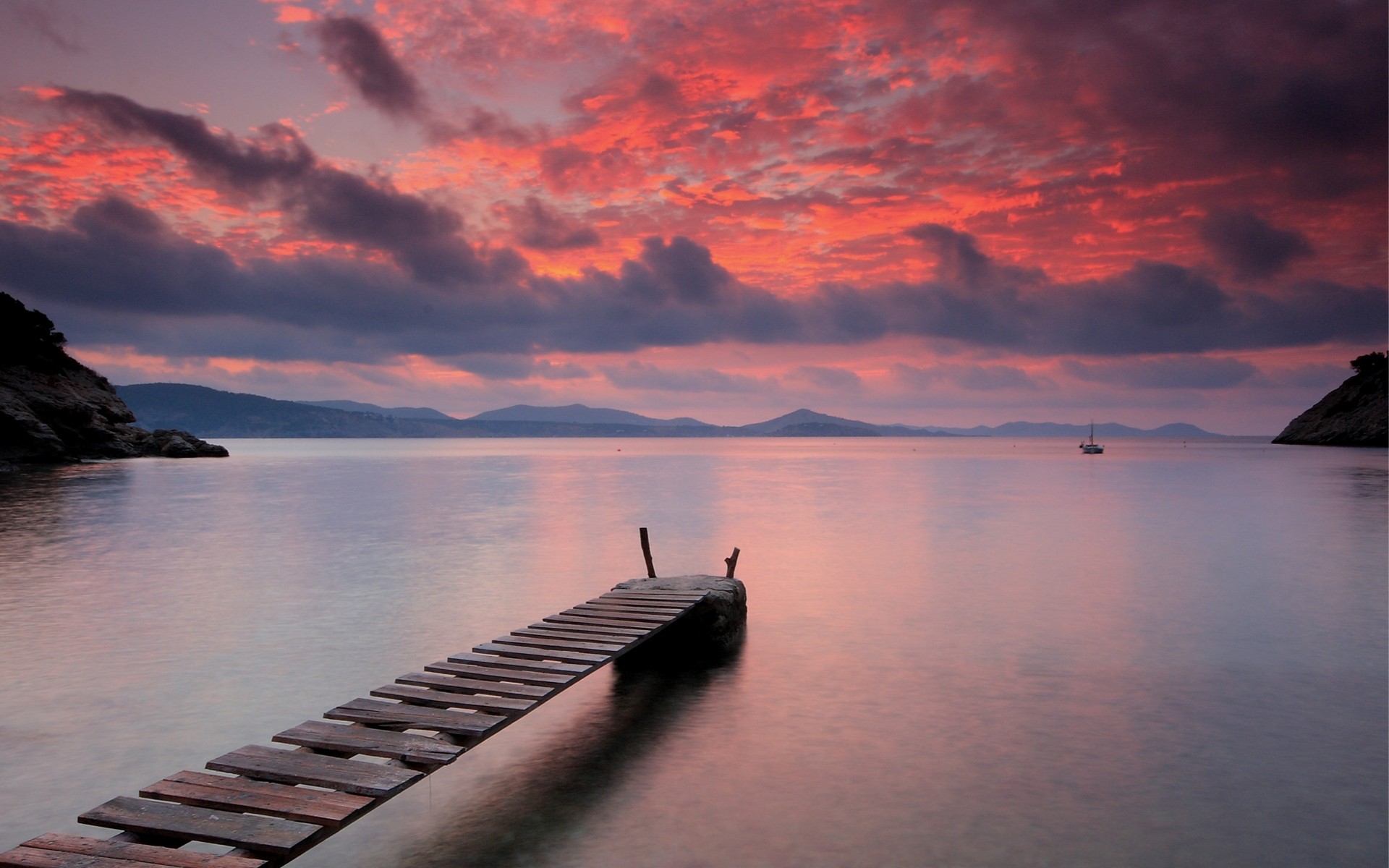 Jade dynasty Rzeka krajobraz mgła miasto góry most światła