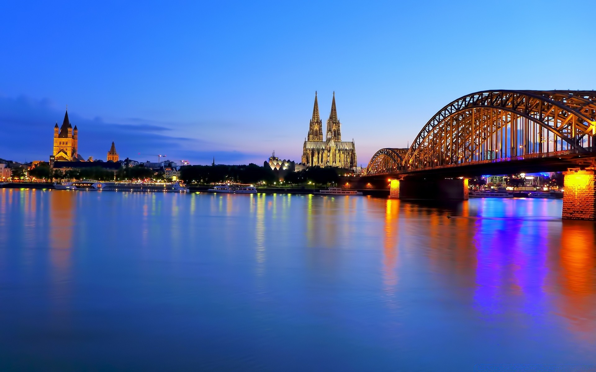 Podświetlanie mostu niebieskim światłem