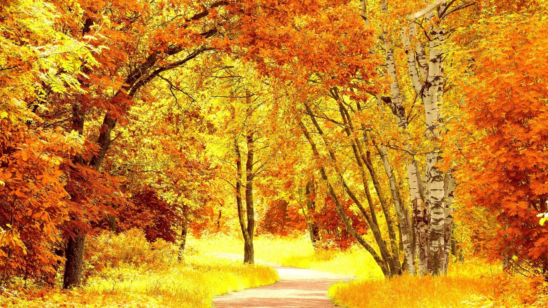 Droga przez żółty jesienny las