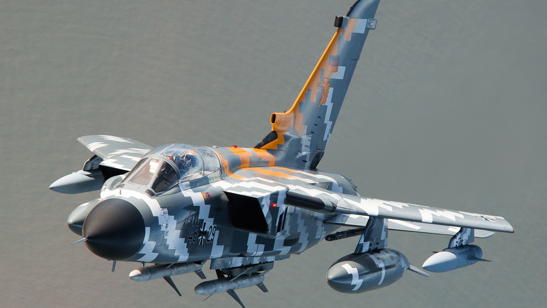 Czarny samolot wojskowy w niebie ponad chmurami