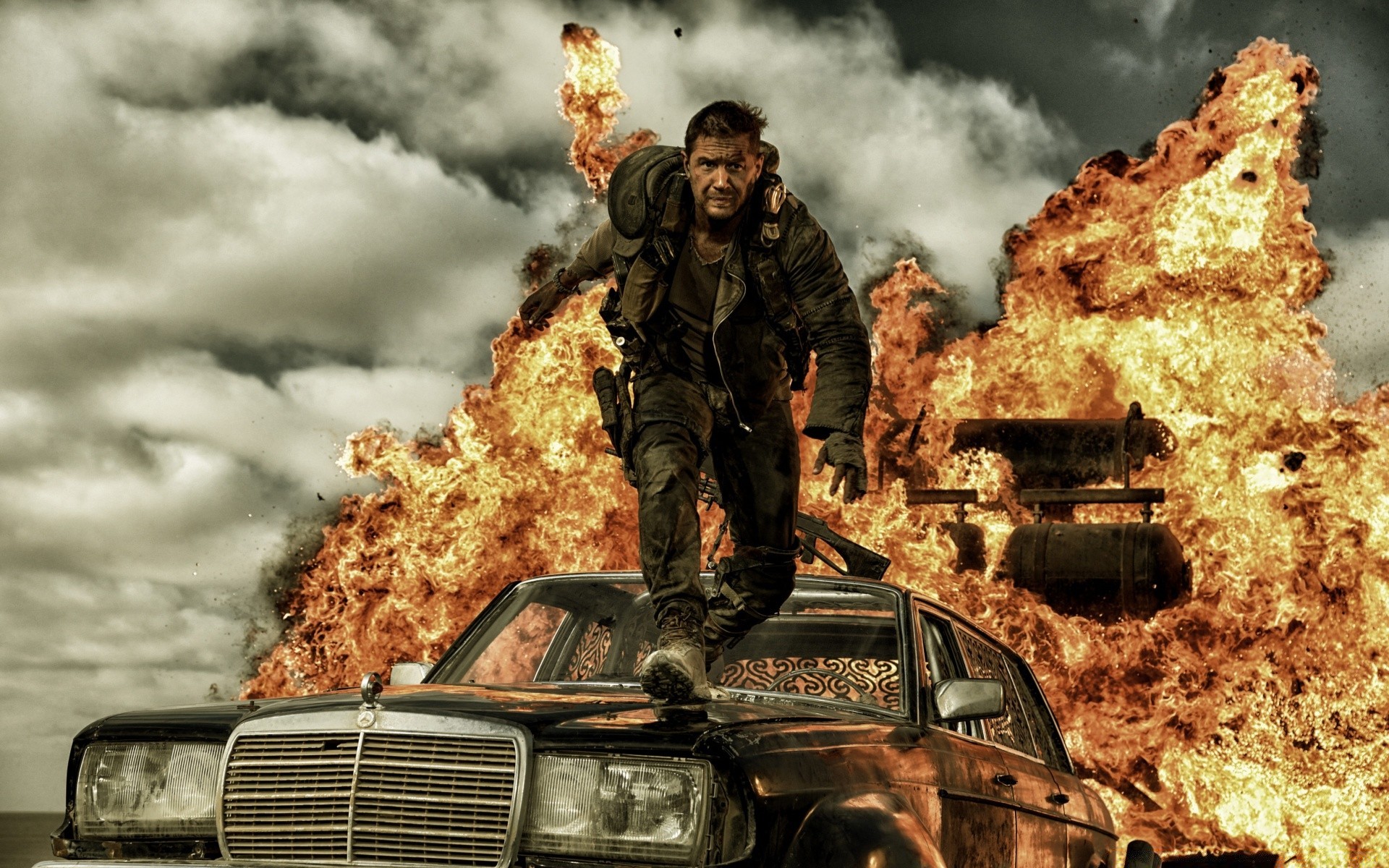Mężczyzna na tle wybuchu ognia