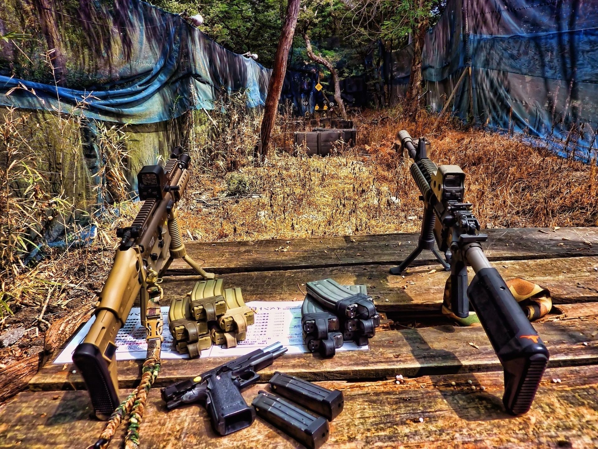Żołnierze z bronią podczas działań wojennych w czerni i bieli