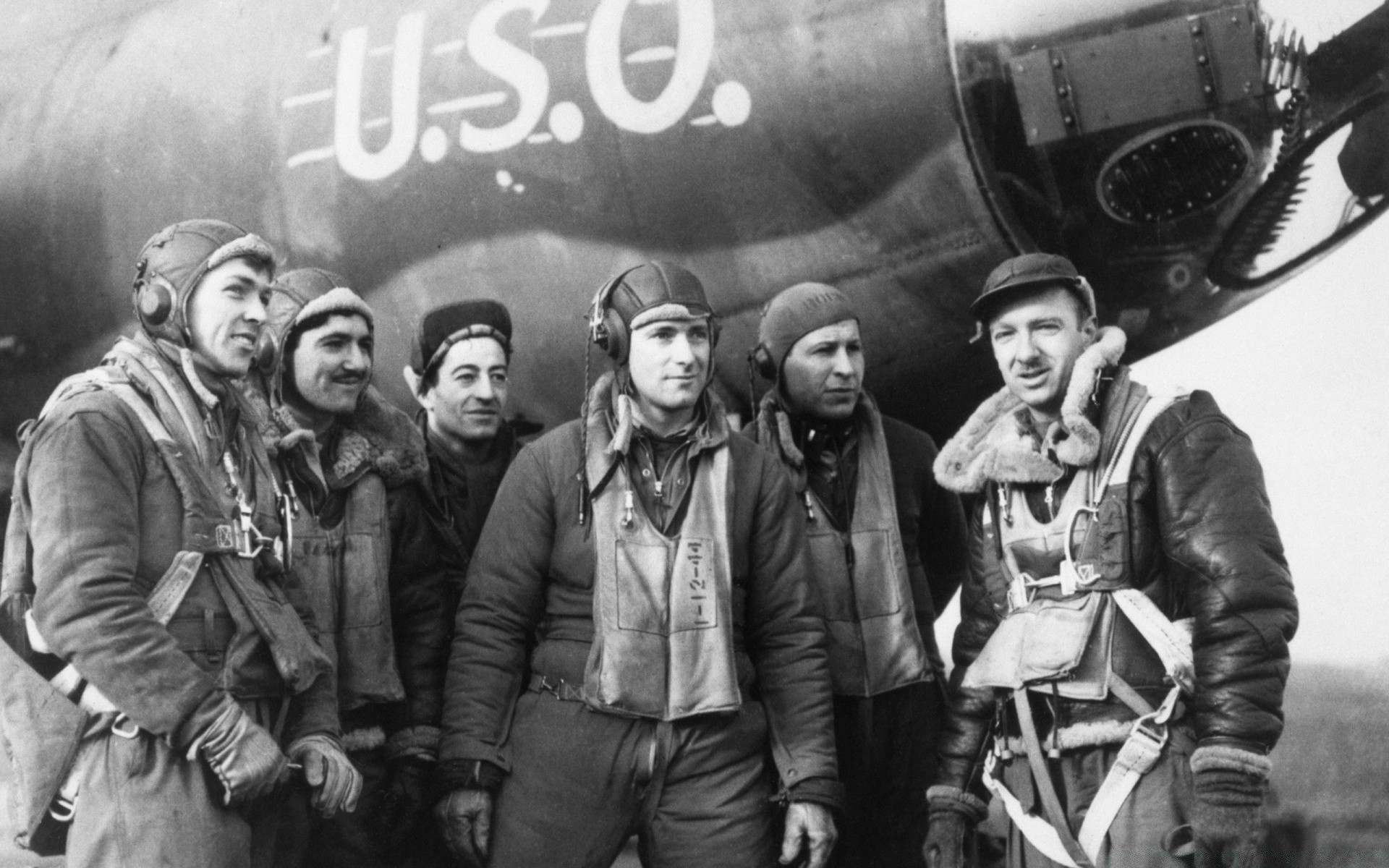 Dwóch wojskowych w pobliżu amerykańskiej flagi na tle
