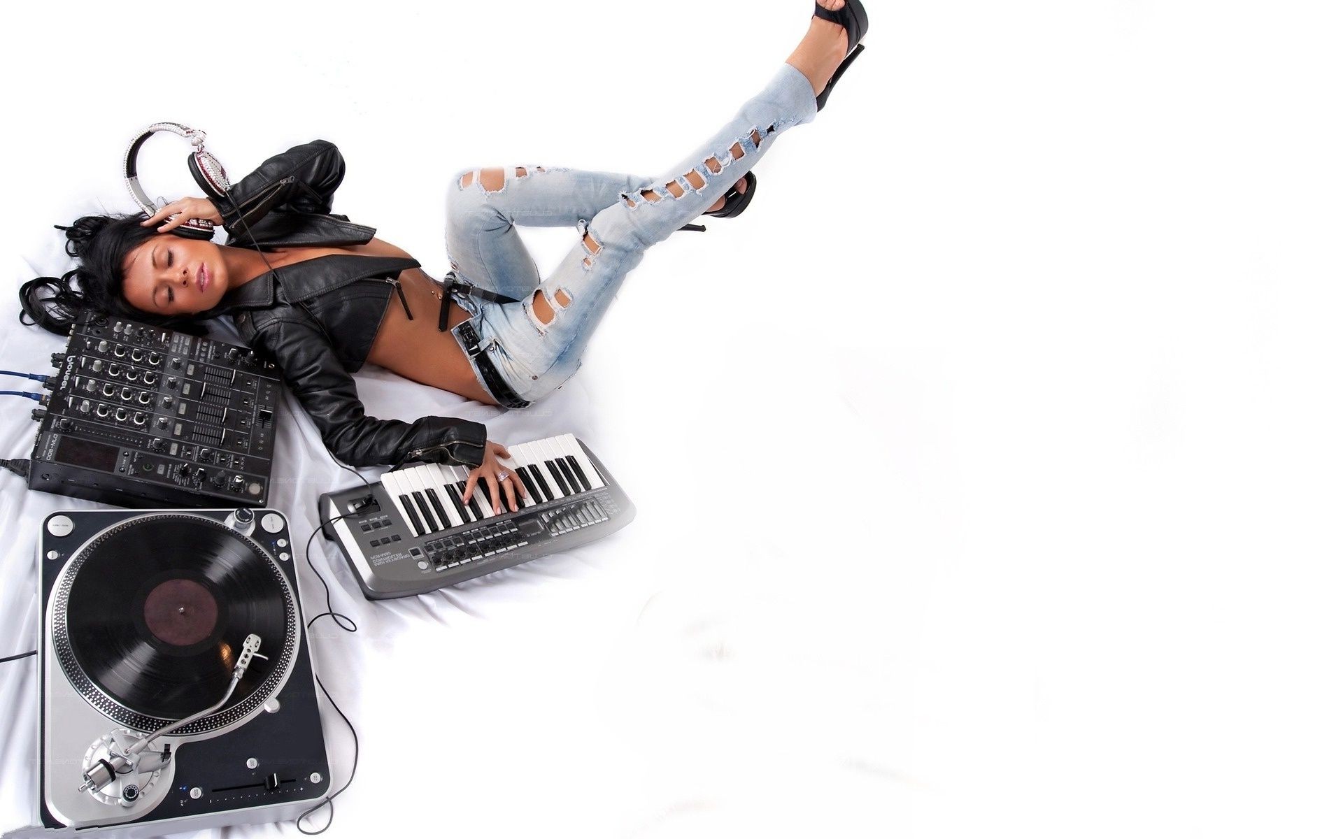 Dziewczyna siedząca na głośnikach z magnetofonem