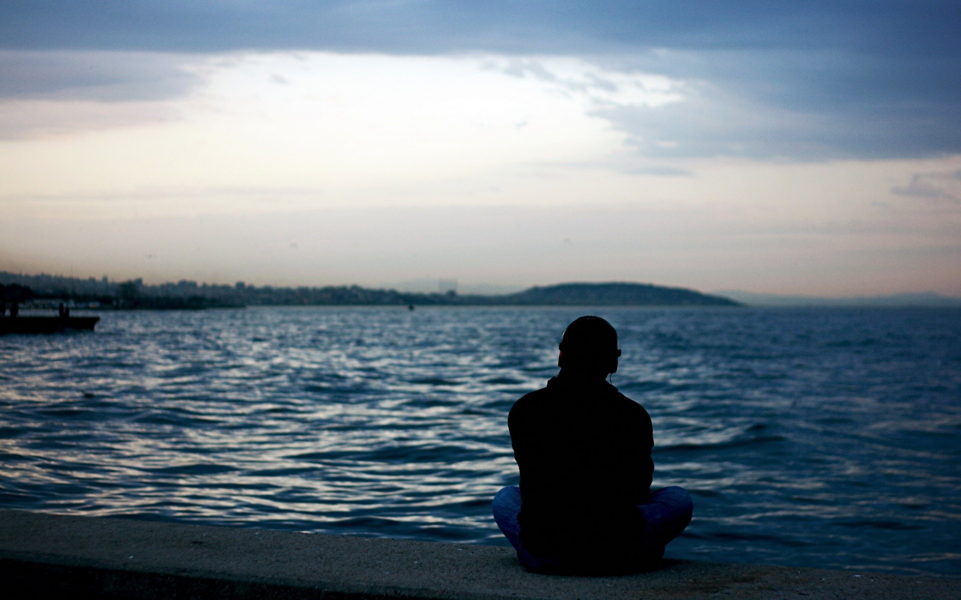 Samotny mężczyzna patrzy na morze
