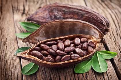Ziarna kawy na zielonym liściu