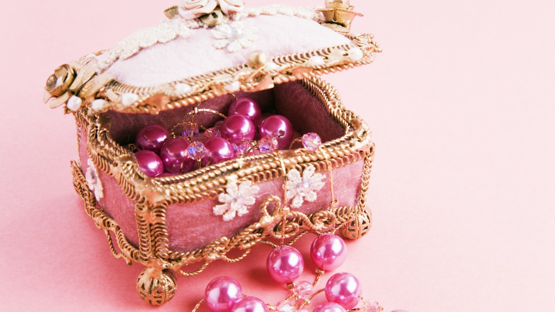 Różowe pudełko z różowymi perłami