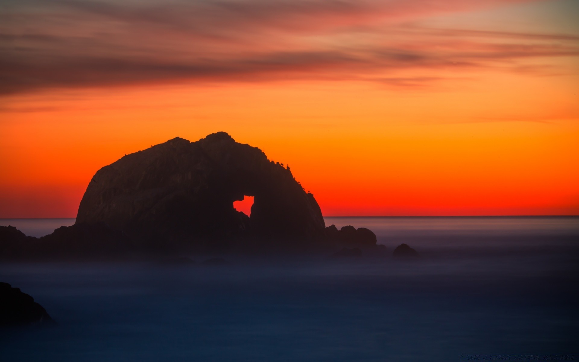 Natura. Morze o zachodzie słońca. Horyzont