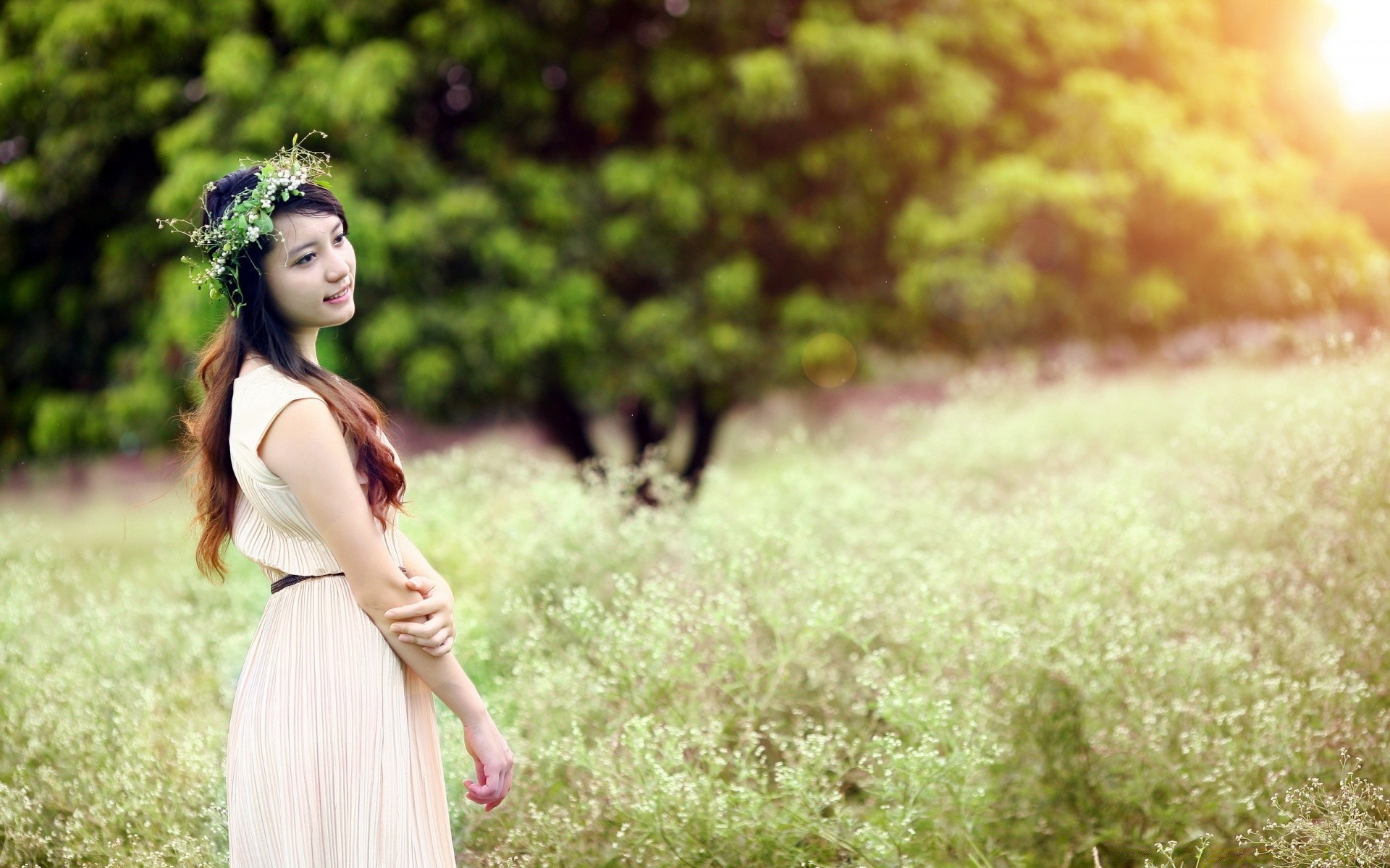 Kobieta aktorka na świeżym powietrzu latem na łonie natury