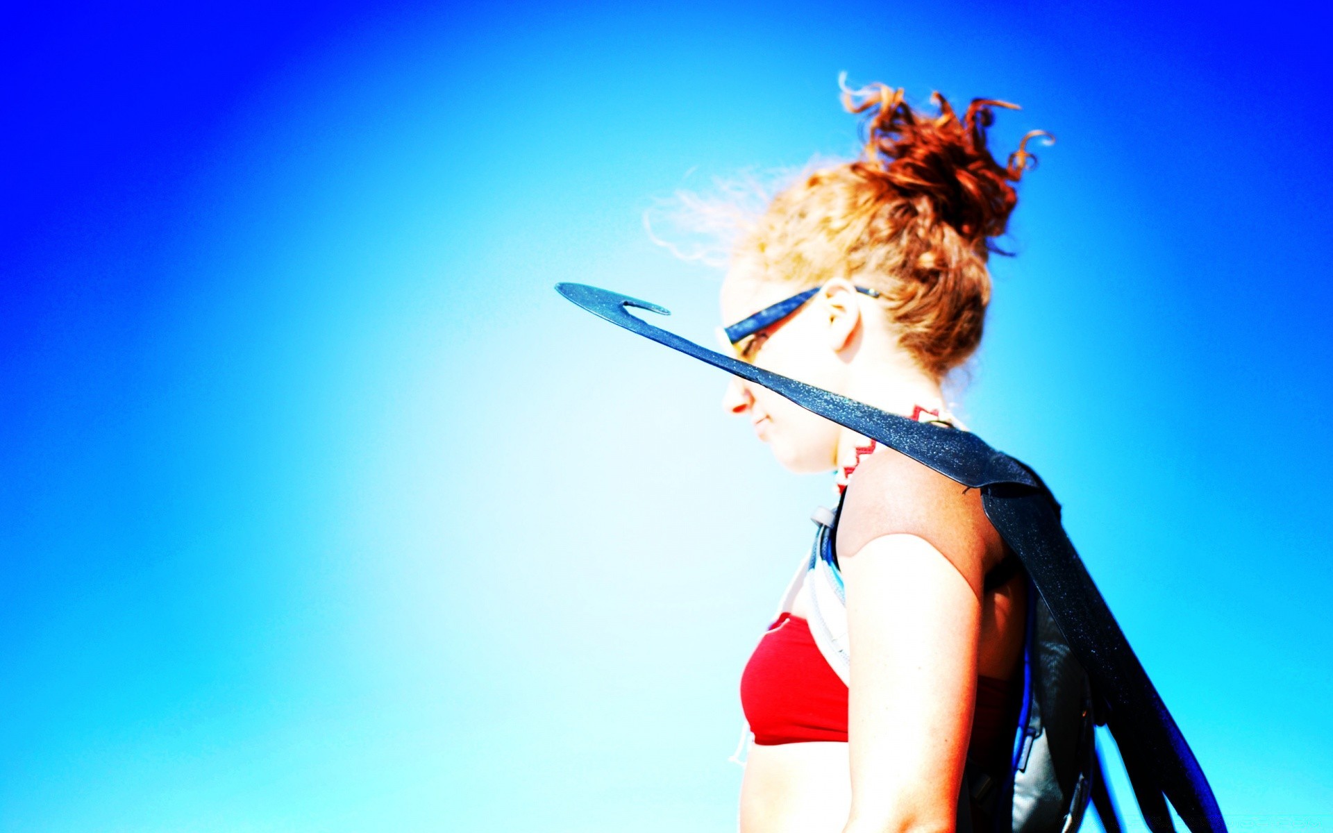 Jedna ruda dziewczyna na tle błękitnego nieba