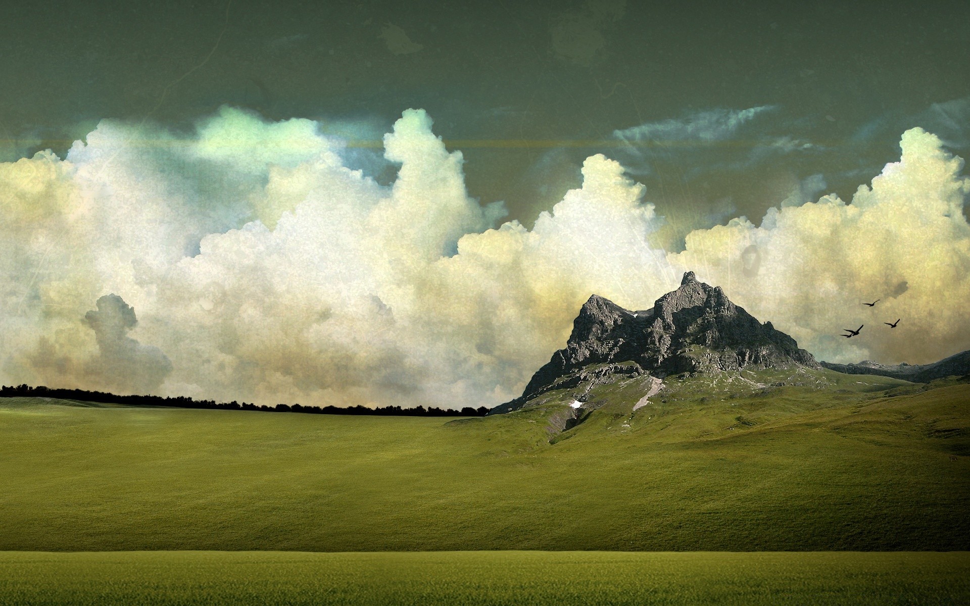 Gęste chmury obok gór i pola
