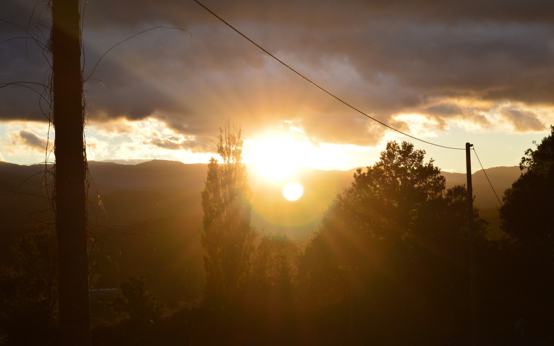 Wulkan erupcja drzewa popiół Czerwone niebo