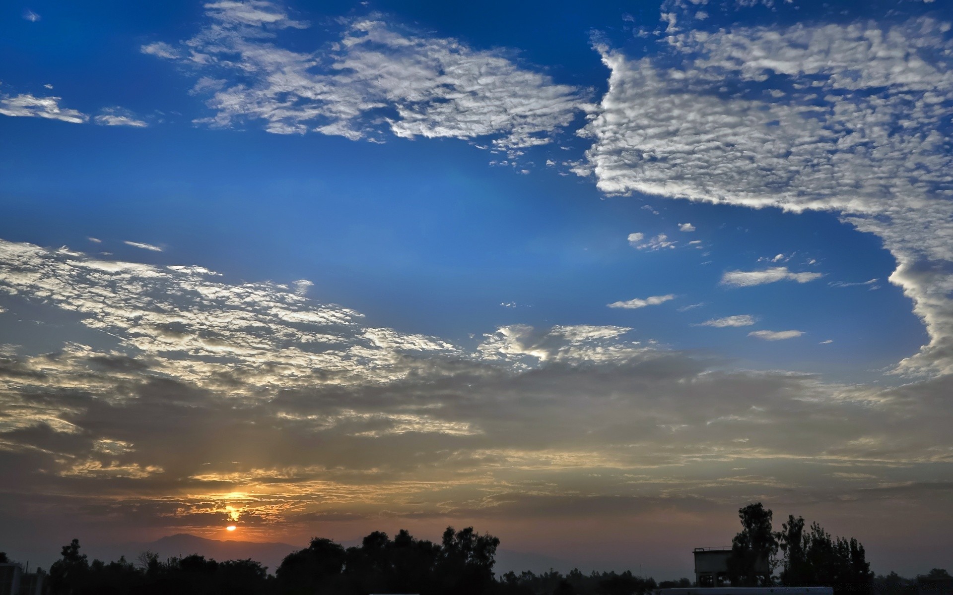 Brązowe niebo na horyzoncie po zachodzie słońca