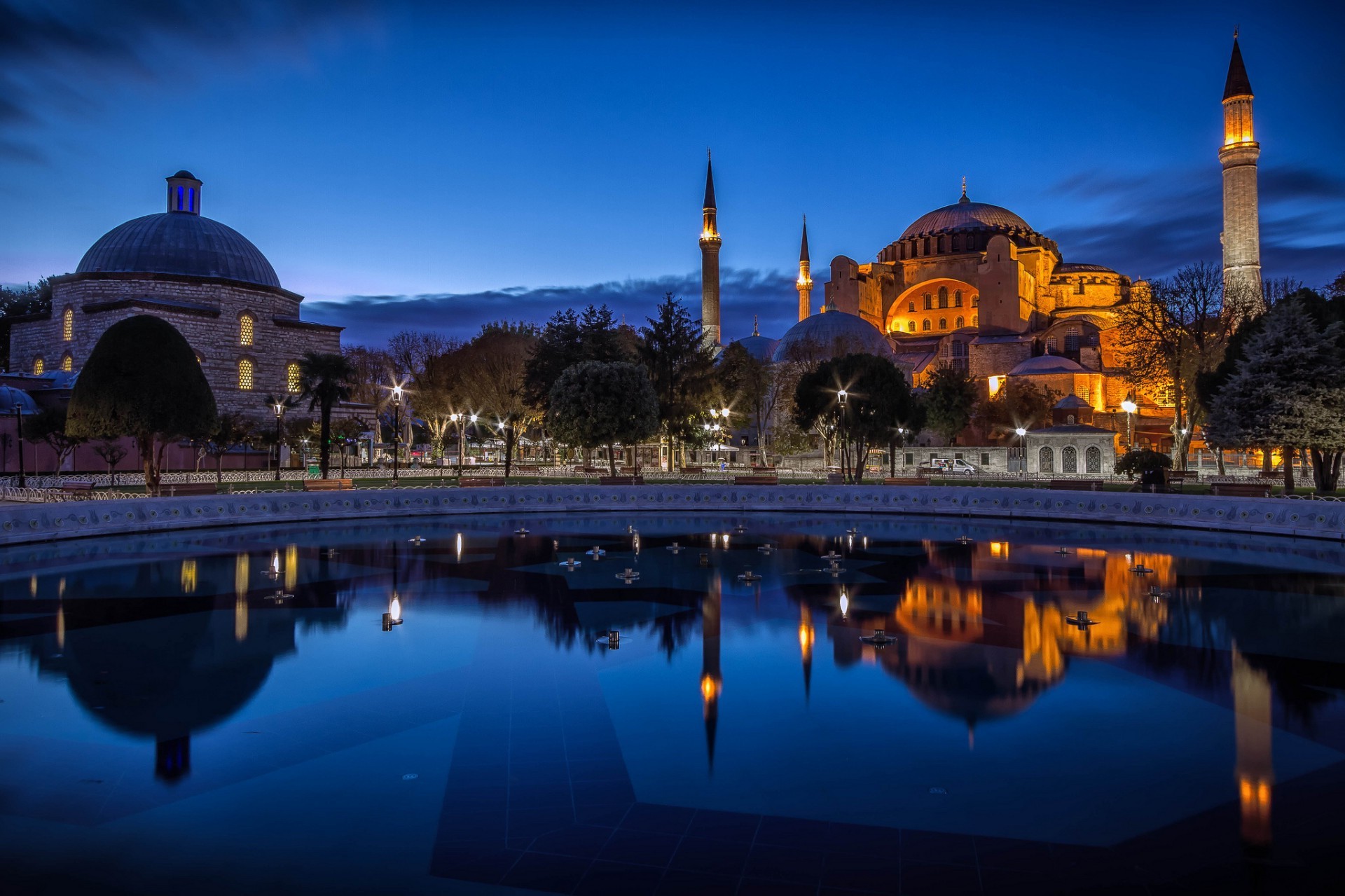NOCNE MIASTO odbija się w wodzie