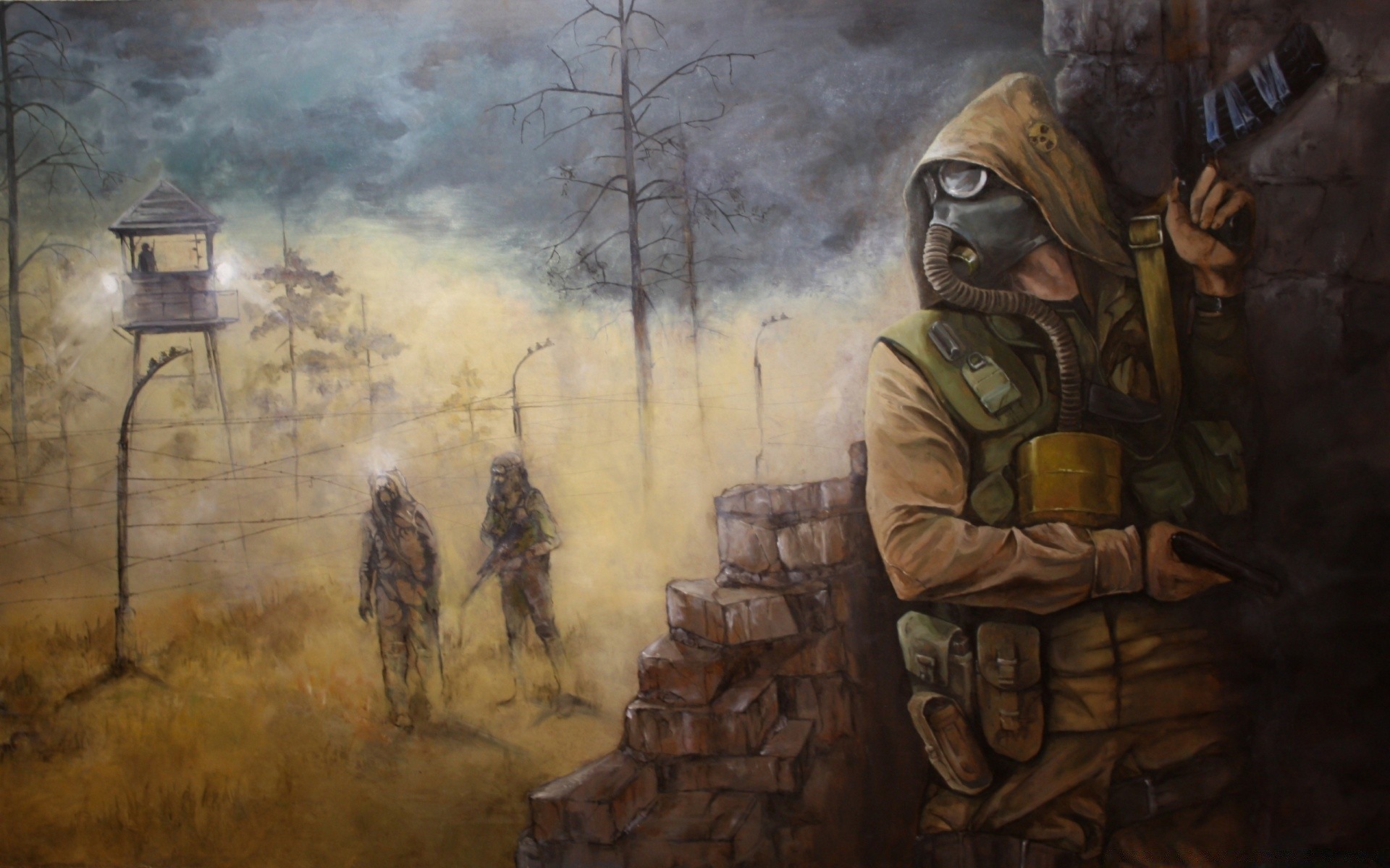 Mężczyzna Wojskowy w zainfekowanym obszarze z bronią