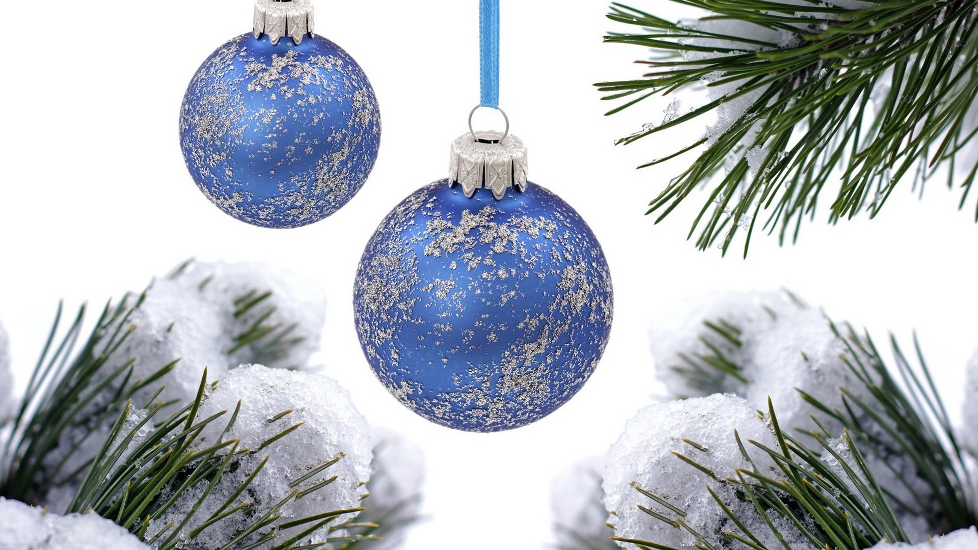 Niebieska bombka na tle śniegu