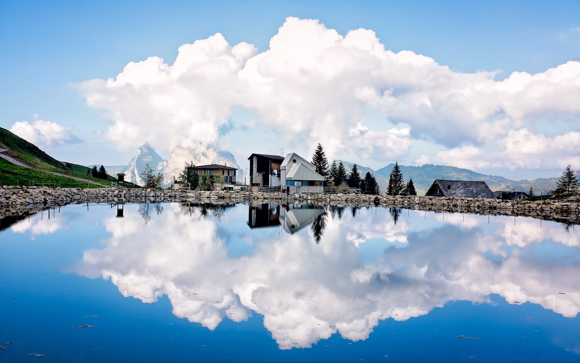 Odbicie chmur w górskim jeziorze natura