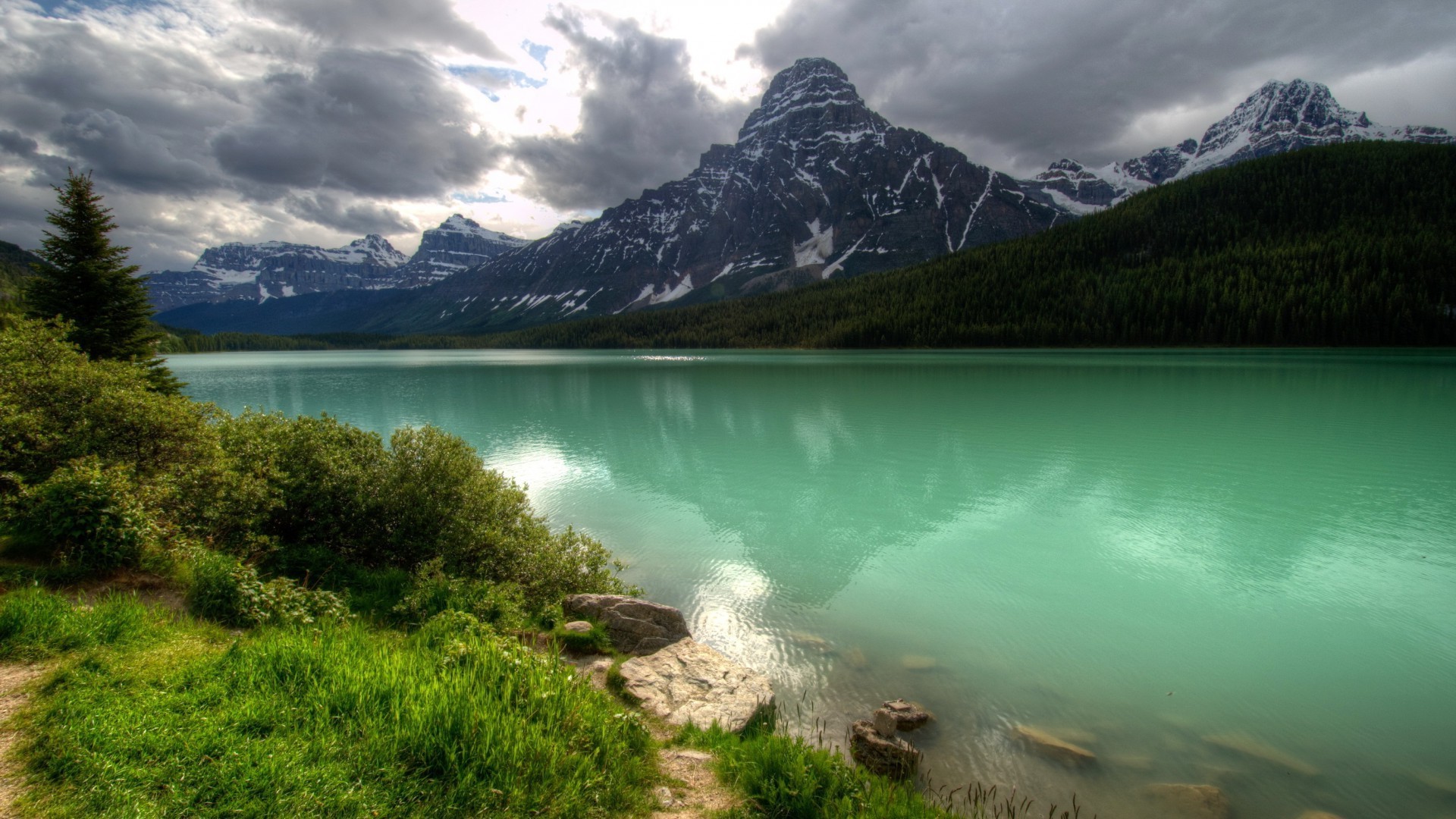 Piękny górski krajobraz. Zachód i świt. Rzeka. Odbicie w rzece