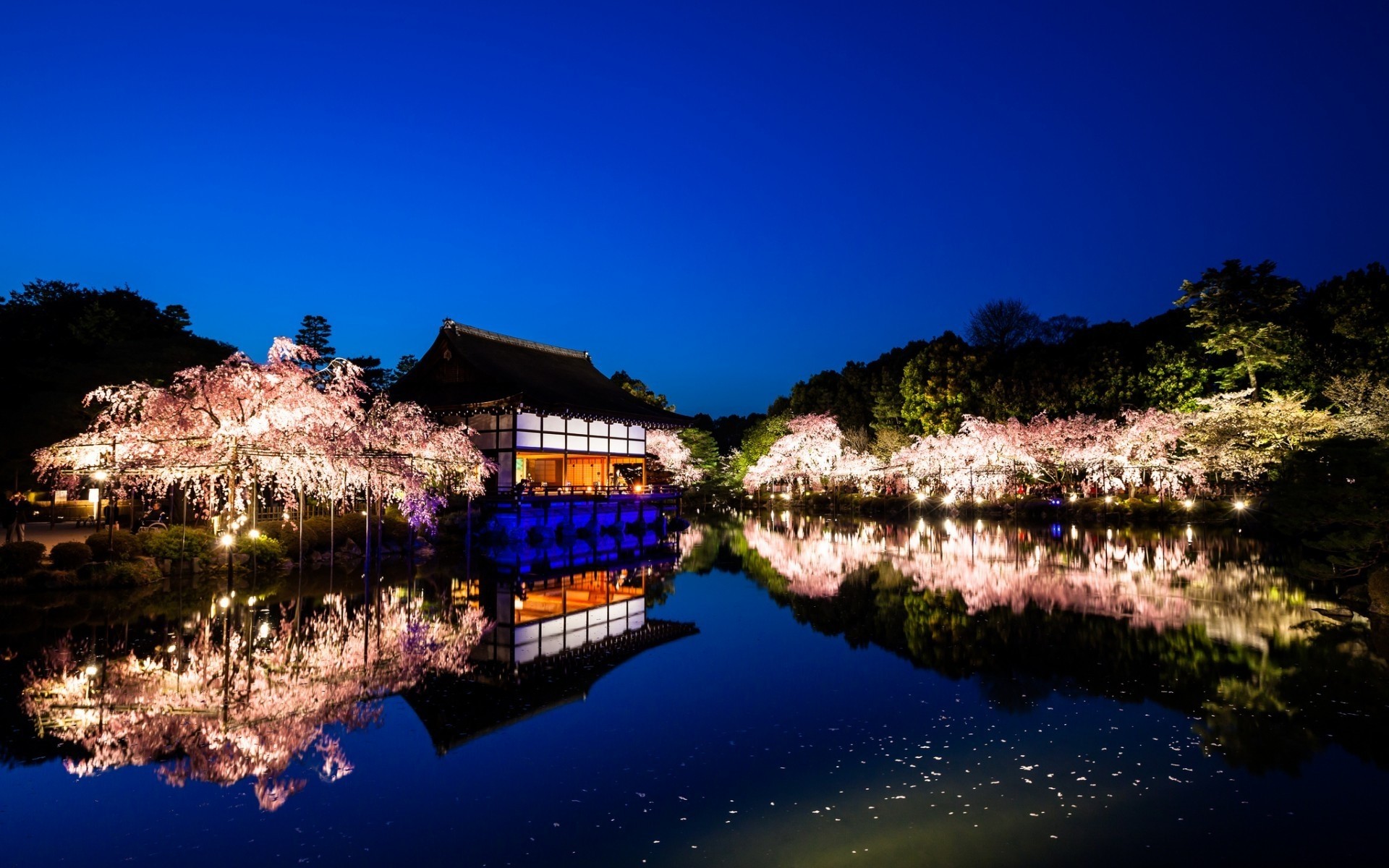 Odbicie zachodu Słońca w innym mieście na tle wody
