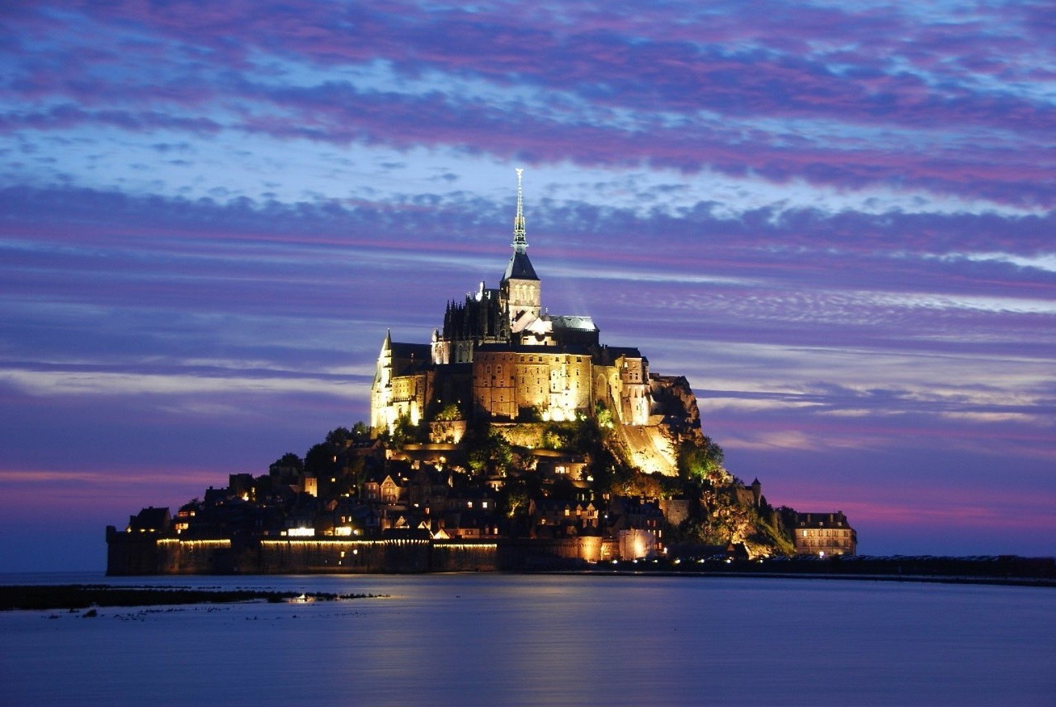 ZAMEK O ŚWICIE WŚRÓD POWIERZCHNI WODY