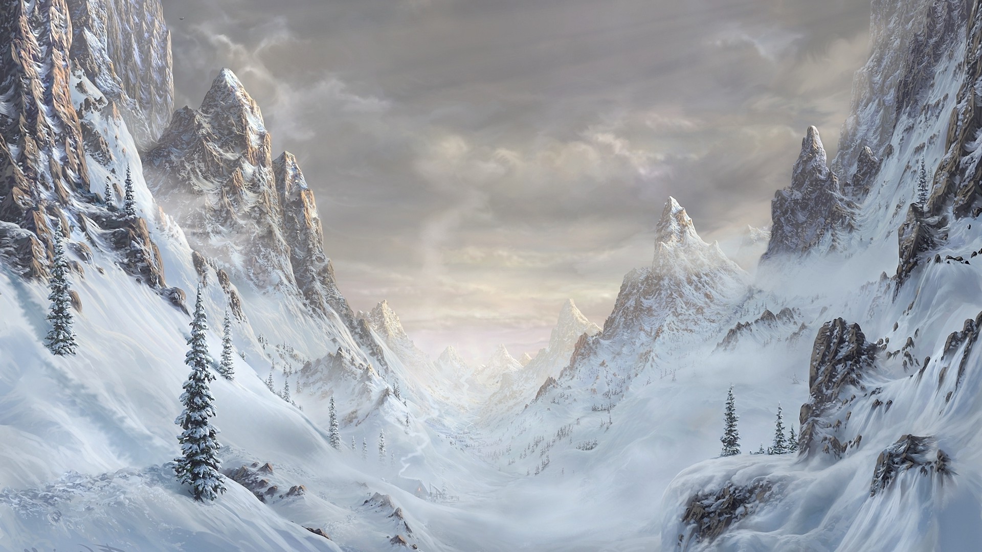 Drzewo na pierwszym planie z zimowym tłem i górami
