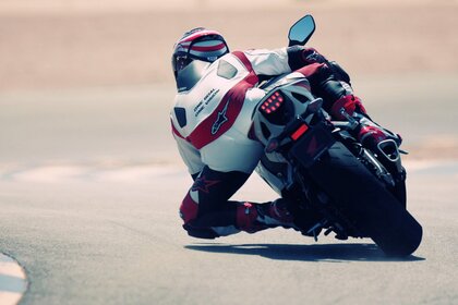 MOTOCYKLISTA WCHODZI W OSTRY ZAKRĘT