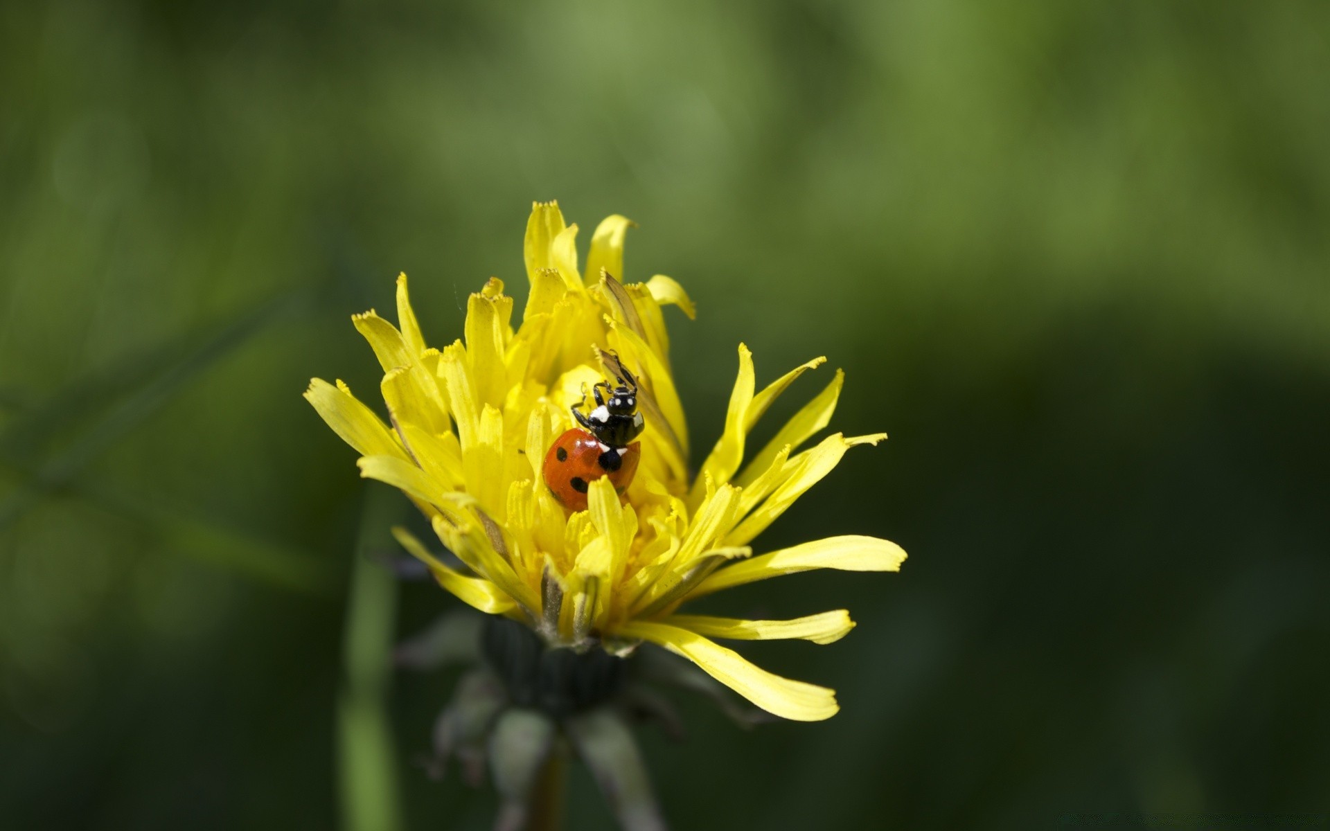 Pszczoła usiadła na kwiatku w promieniach słońca
