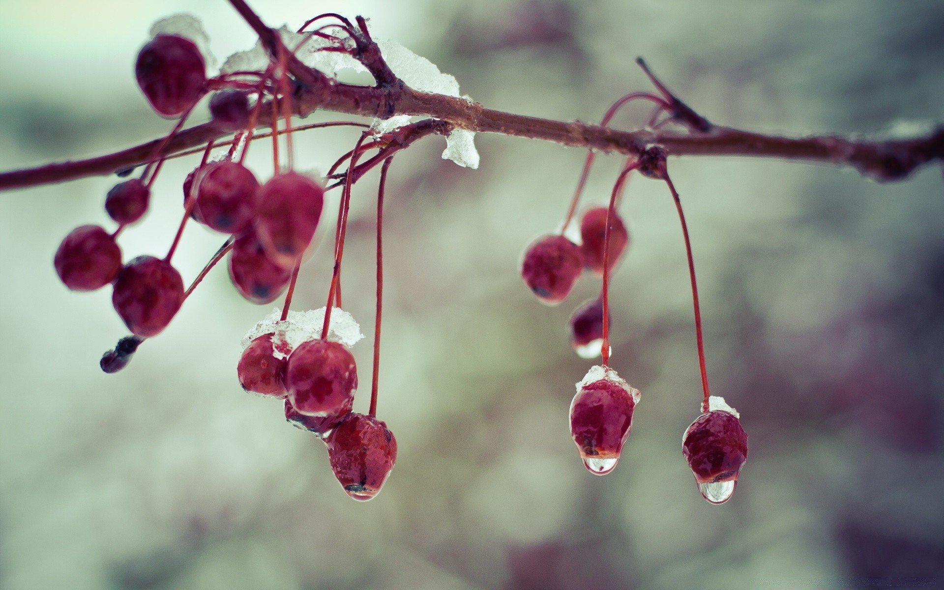 Jagody w śniegu rozmyte tło
