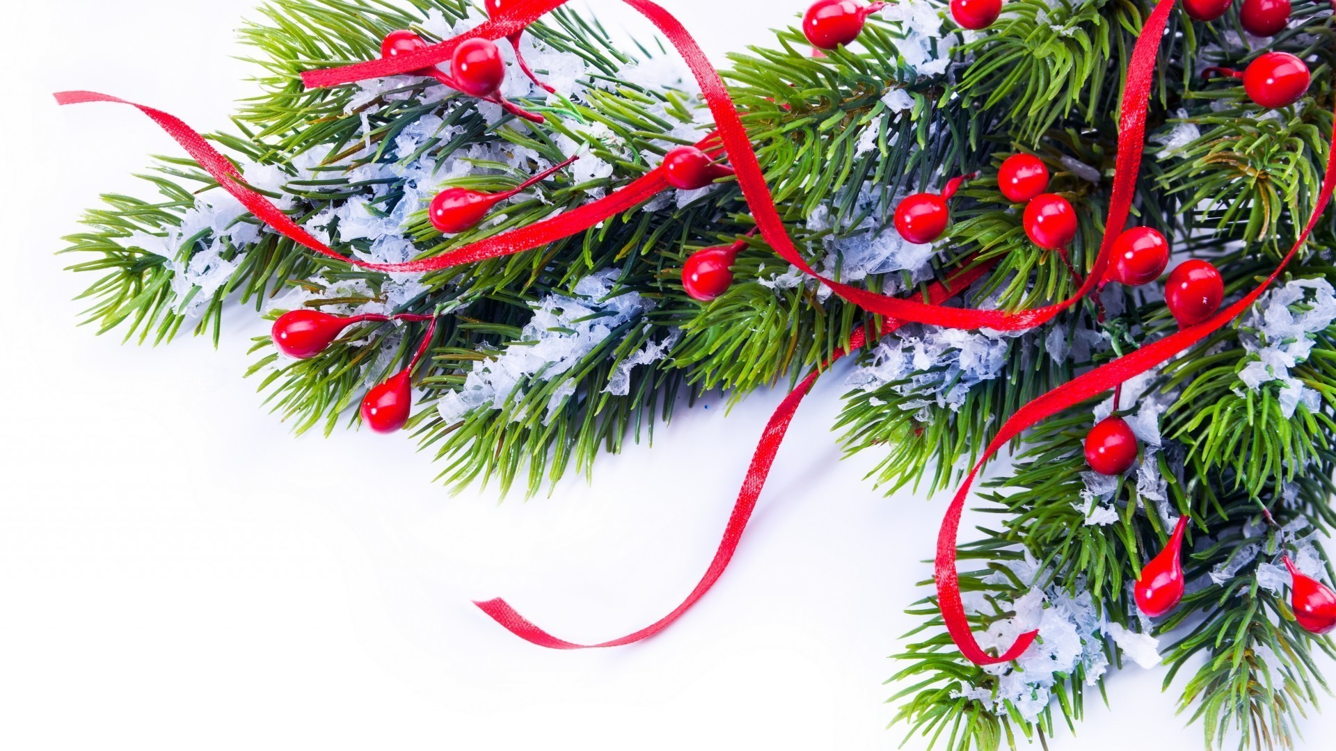 Świerkowe gałęzie świąteczne z czerwoną kokardką