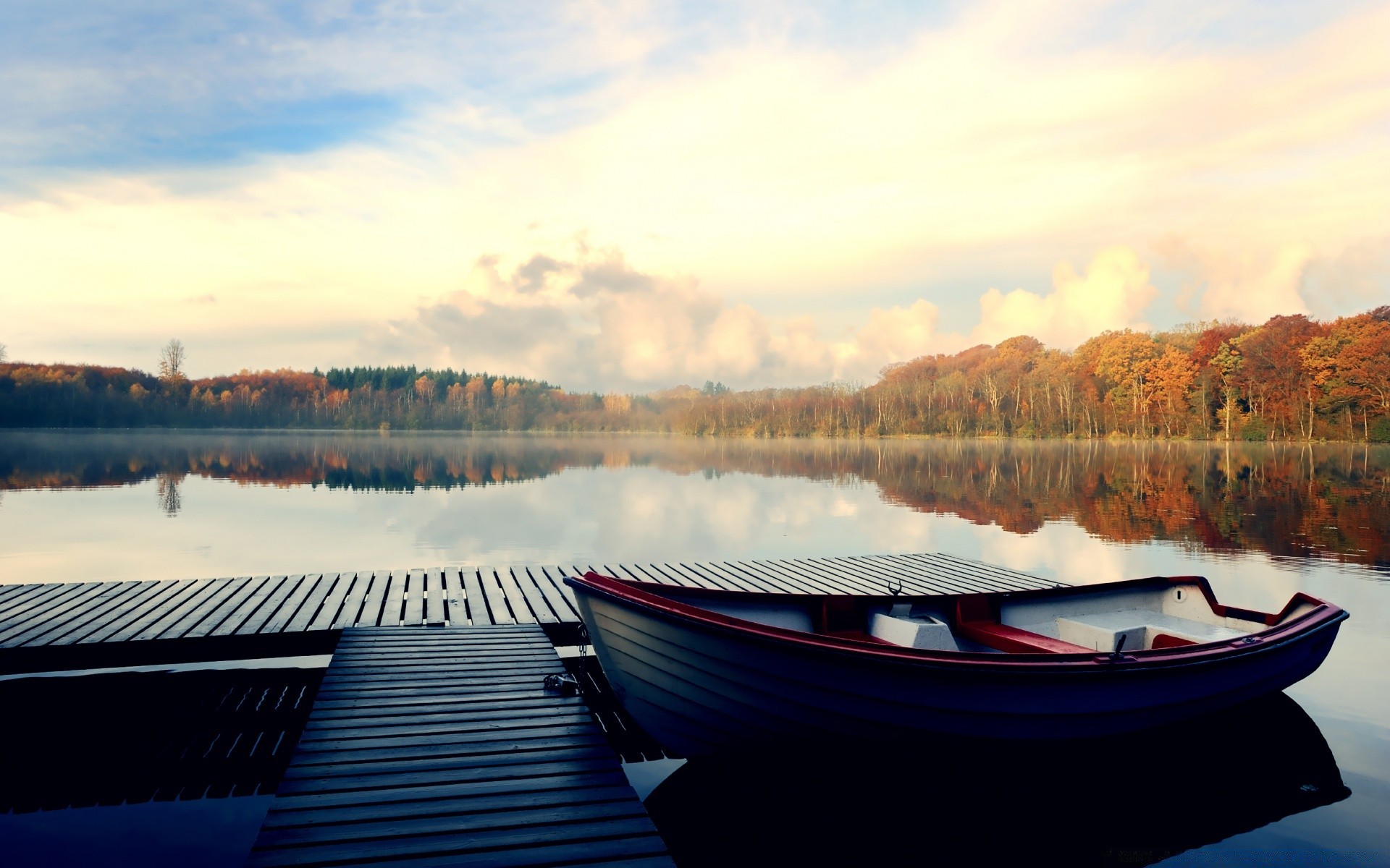 Łódź, przystań, jezioro i Panorama lasu