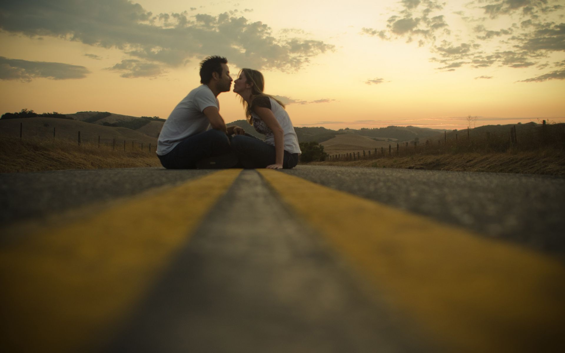 Romantyczne zdjęcie zakochanej pary o zachodzie słońca