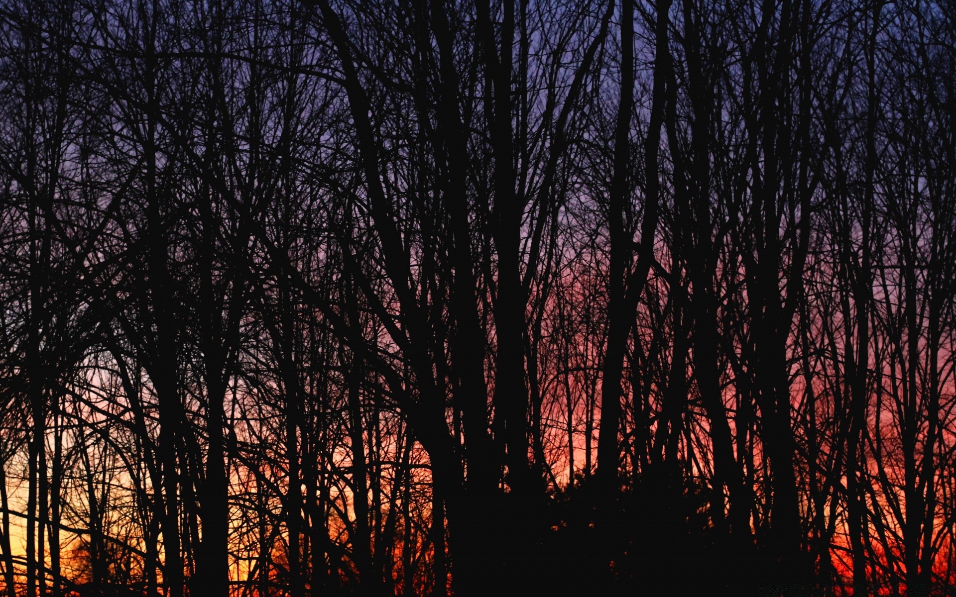 Ciemny zachód słońca nad brzegiem cichego jeziora