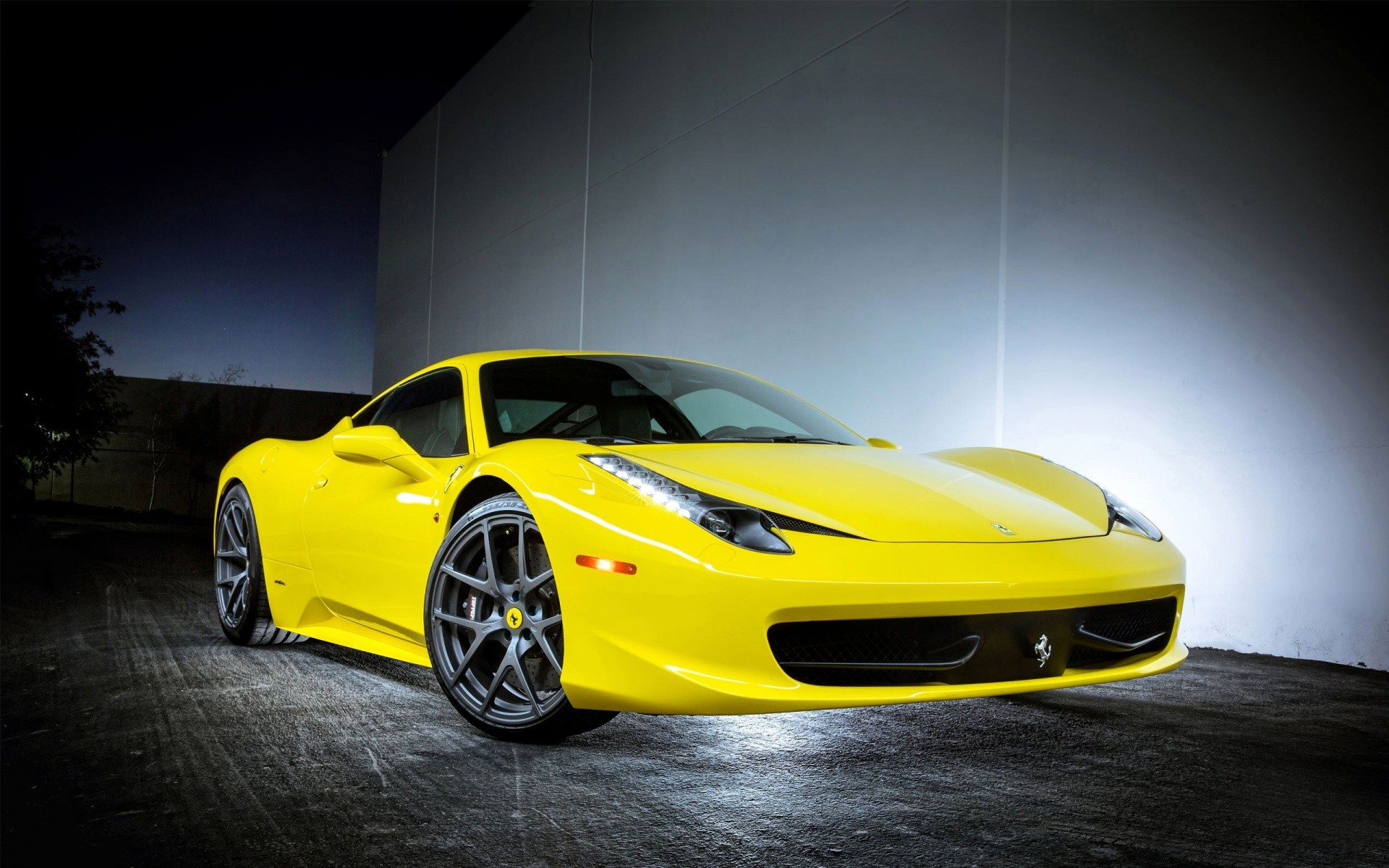 Czarny samochód ze srebrnymi felgami na gradientowym tle