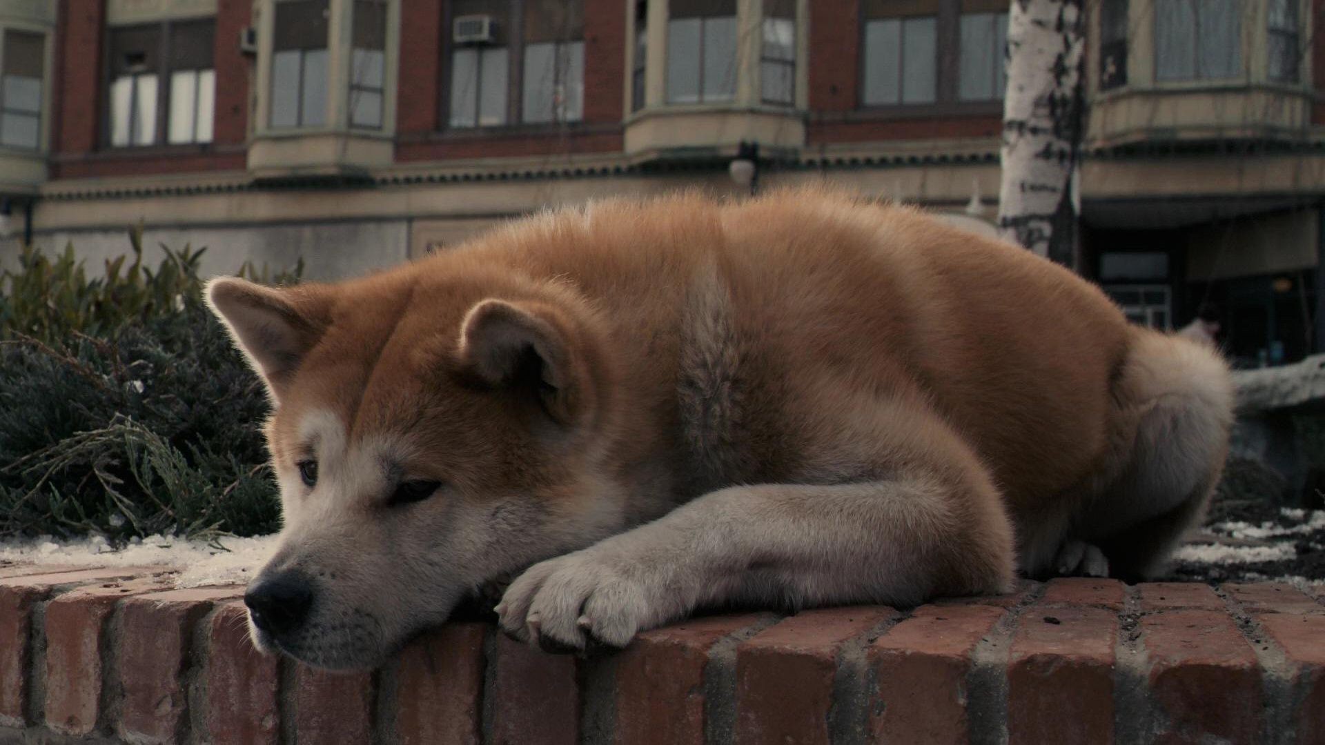 Akita inu leży smutna