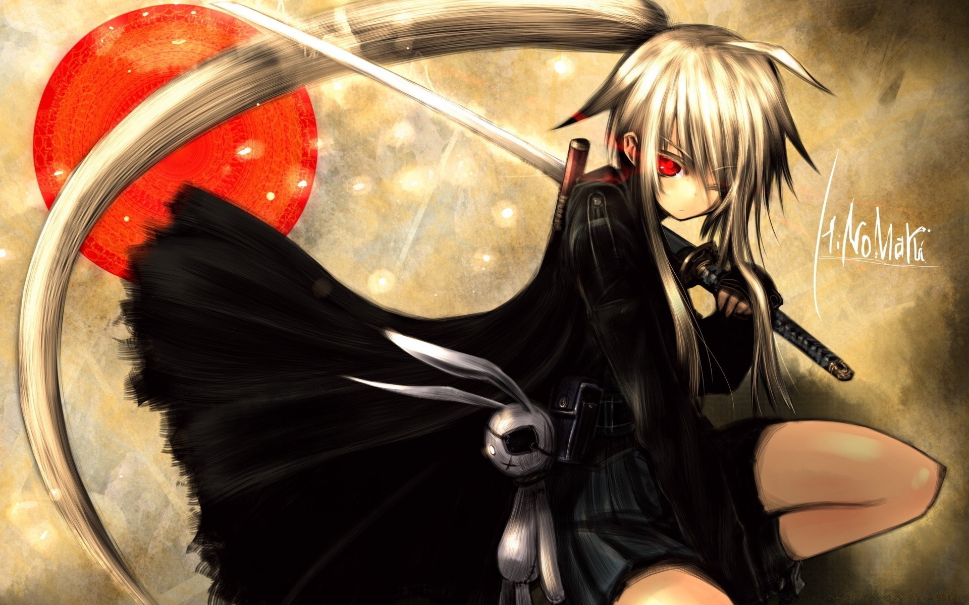 Dziewczyna z anime płacze trzymając miecz w rękach