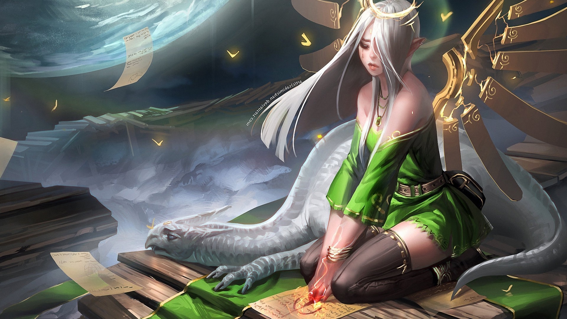 Anime dziewczyna ze smokiem