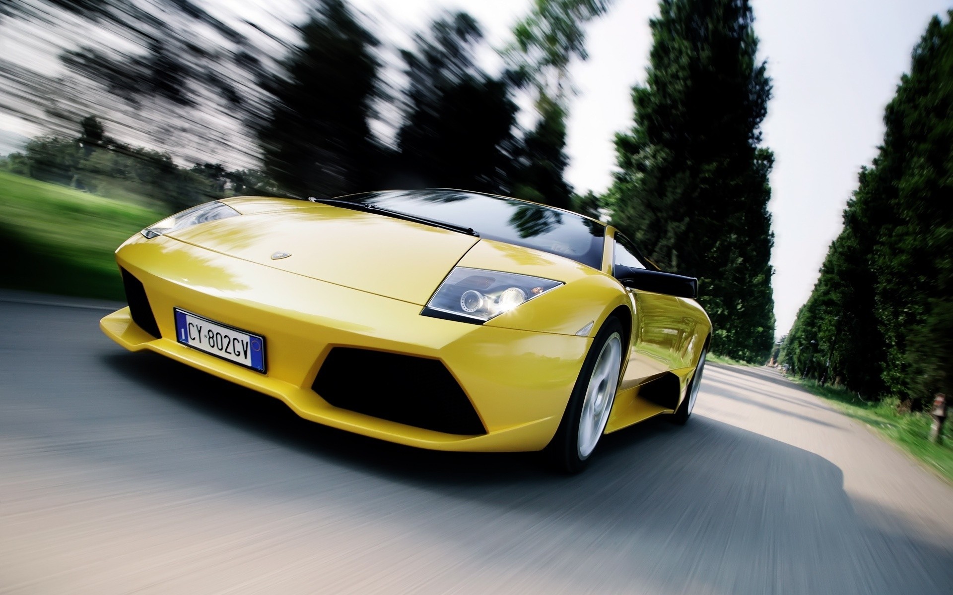 Czerwony bentley jeździ po oświetlonym, rozmytym aswalcie