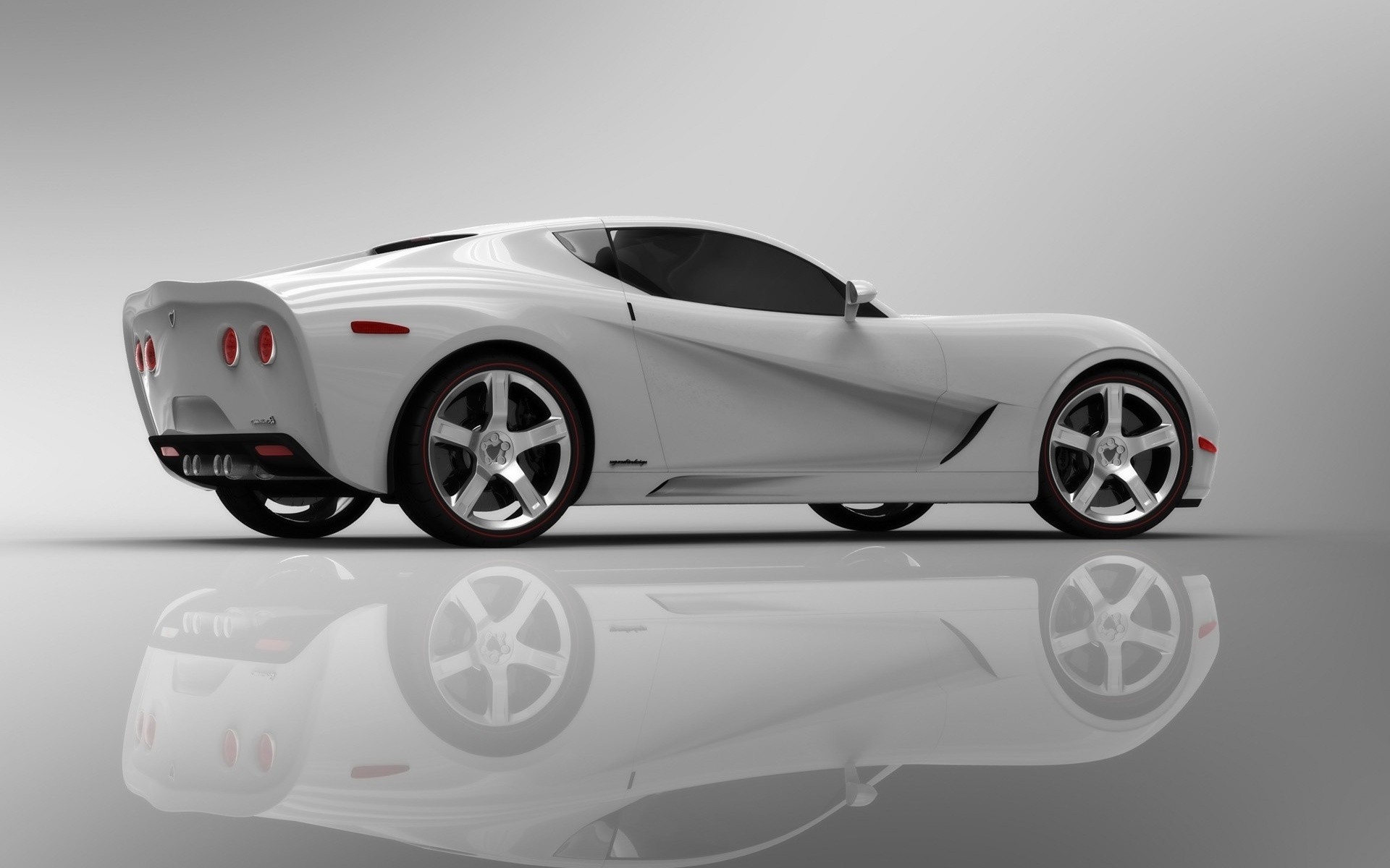 Biały samochód na jasnym tle z błyszczącą podłogą