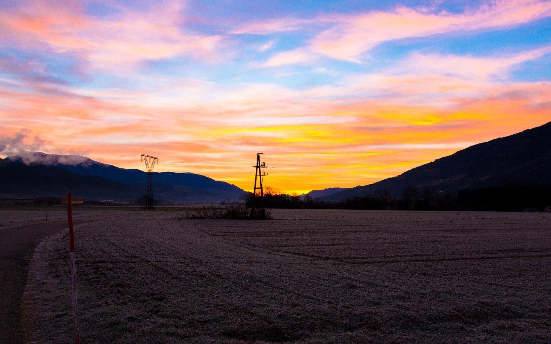 Piękny zachód słońca na łonie natury. przestronne pole o zachodzie słońcaPiękny zachód słońca na łonie natury. Przestronne pole o zachodzie słońca