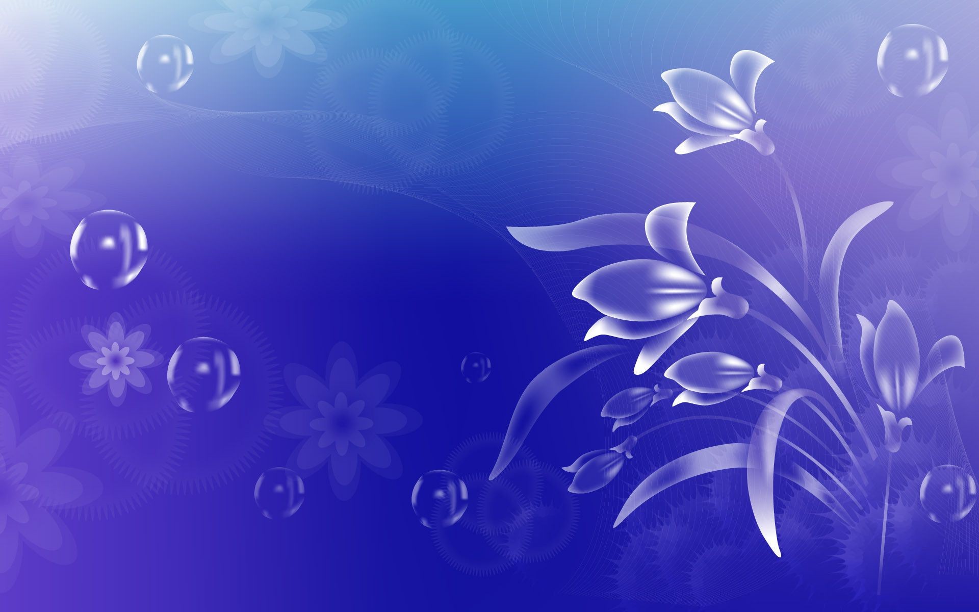 Kwiaty na niebieskim tle bąbelki