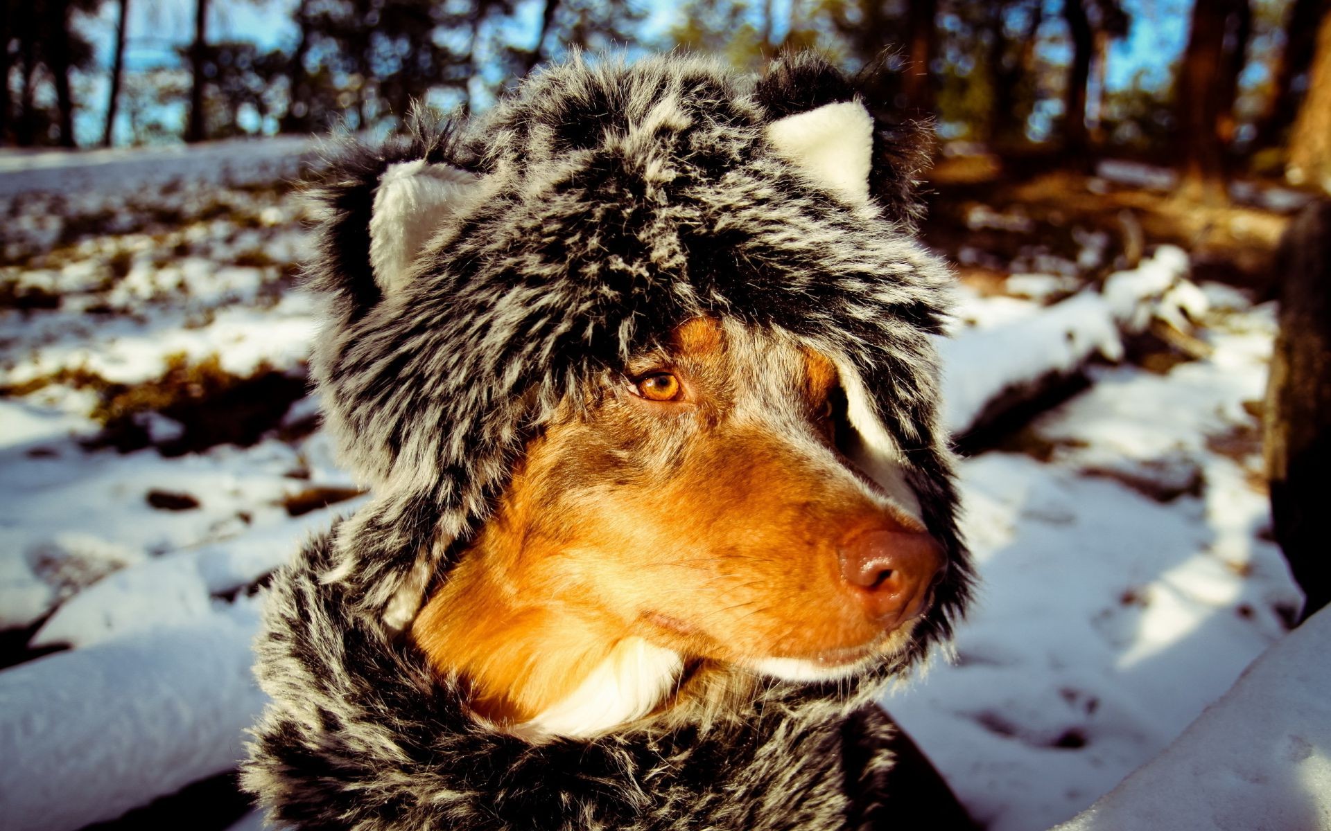 Pies w ciepłym garniturze zimą